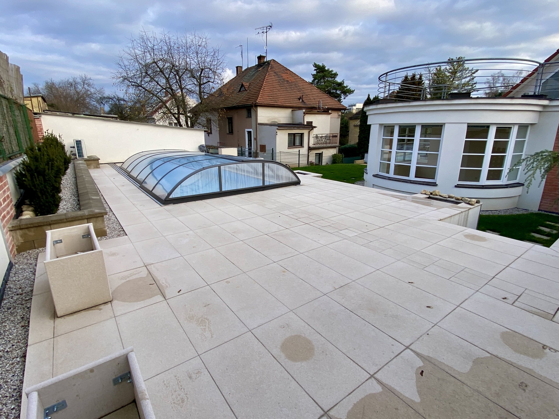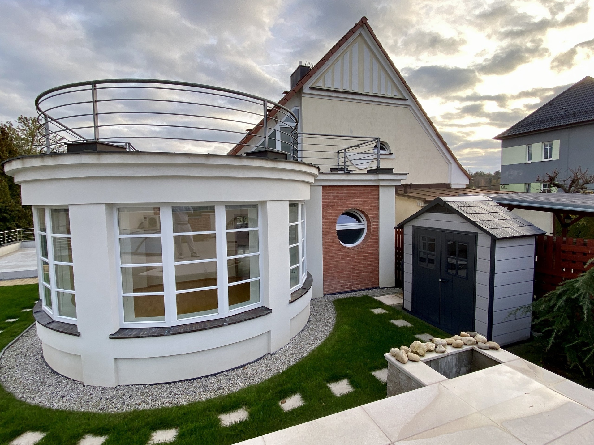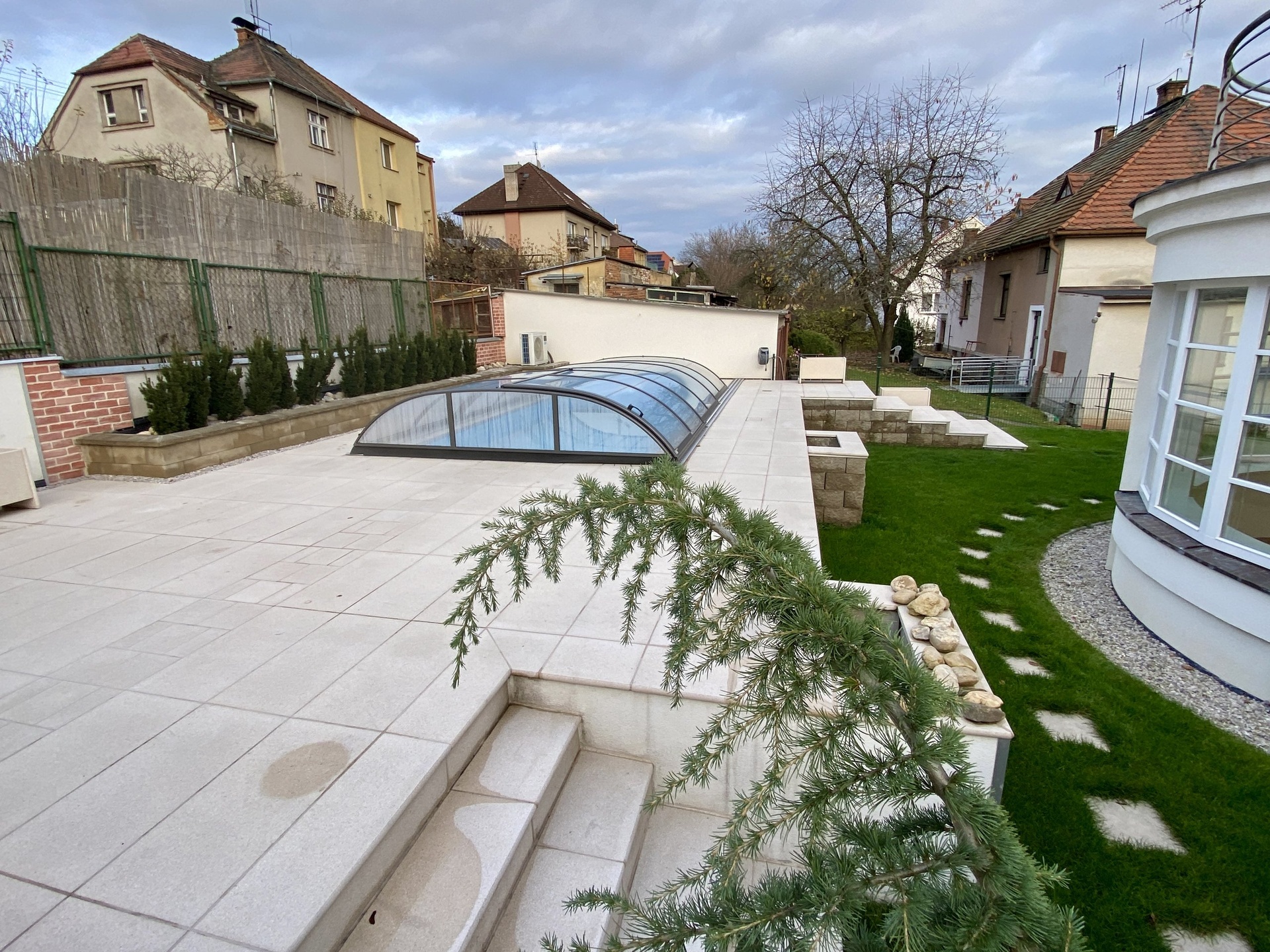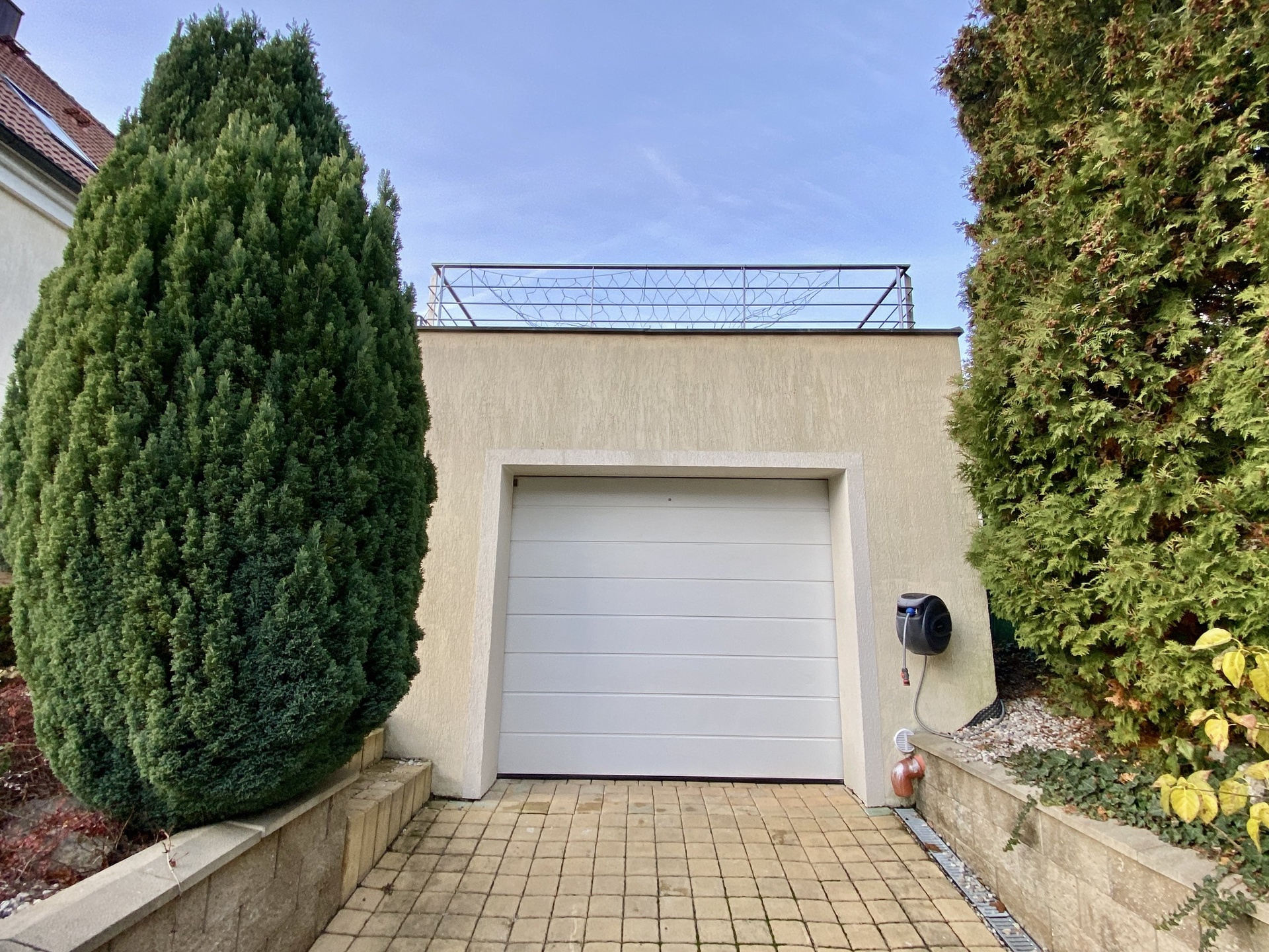 V suterénu domu je prostorný, vytápěný sklep s oknem, kde je přípojka na pračku a sušičku a je ho možno tedy využít k praní a sušení prádla. Vytápění a ohřev teplé vody zajišťuje kondenzační plynový kotel značky Vaillant s nádrží na 120l TUV. K domu náleží zahrada o celkové rozloze 324m², samostatně stojící garáž s terasou na její střeše. Na zahradě byl v roce 2025 zbudován zapuštěný, zastřešený a vyhřívaný bazén tepelným čerpadlem o rozměrech 6x3x1,5m.