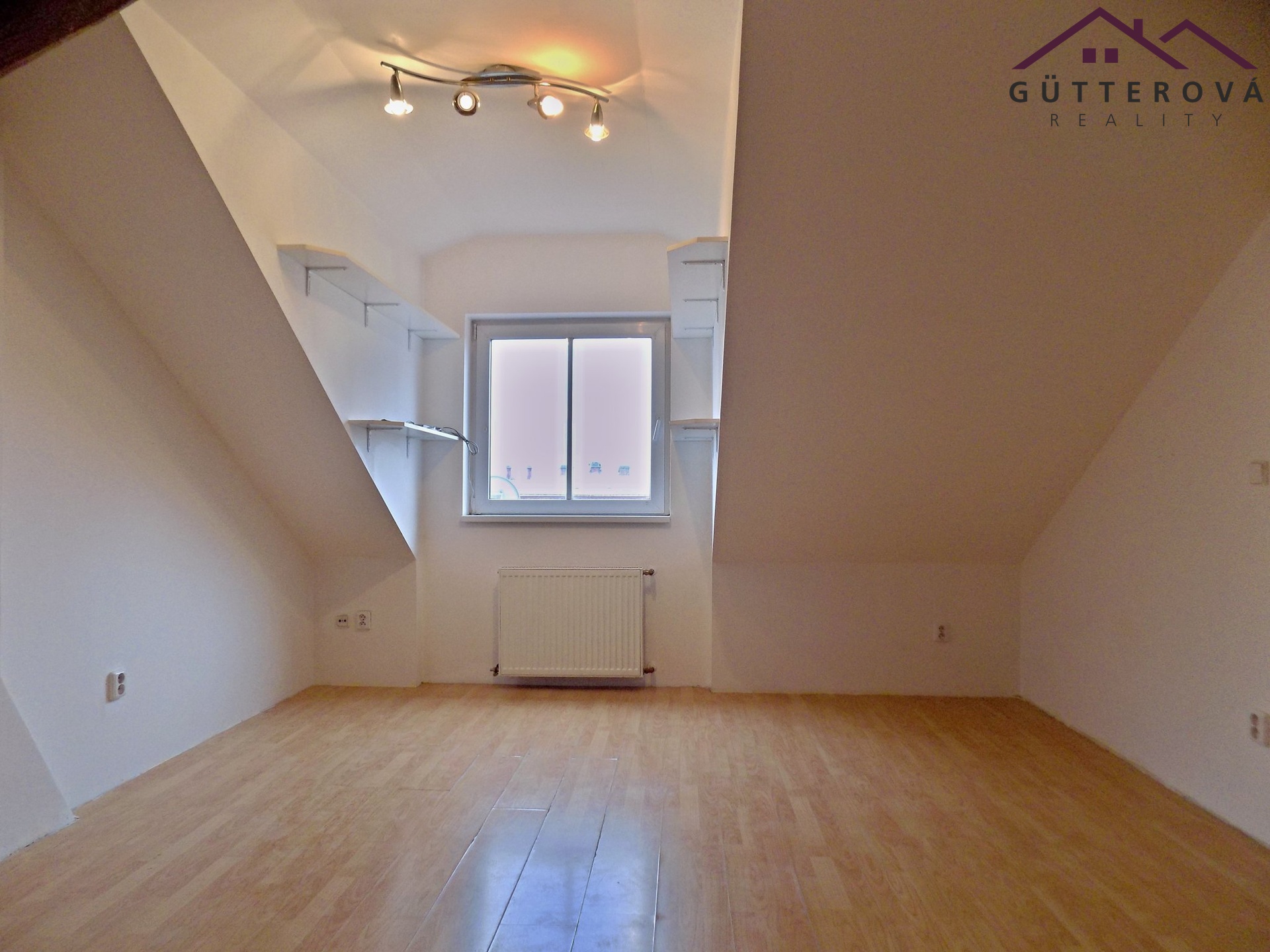 Podkrovní byt se nachází v 5. nadzemním podlaží zděného bytového domu s výtahem a tvoří ho chodba, koupelna s vanou a WC, pokoj a kuchyně vybavena kuchyňskou linkou, plynovým sporákem.
