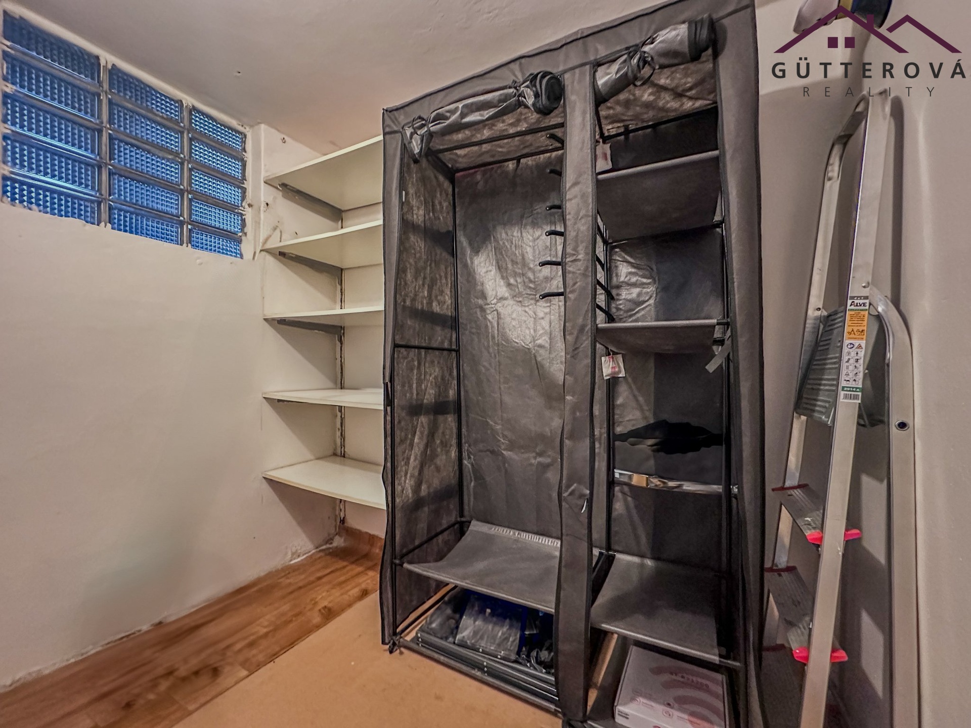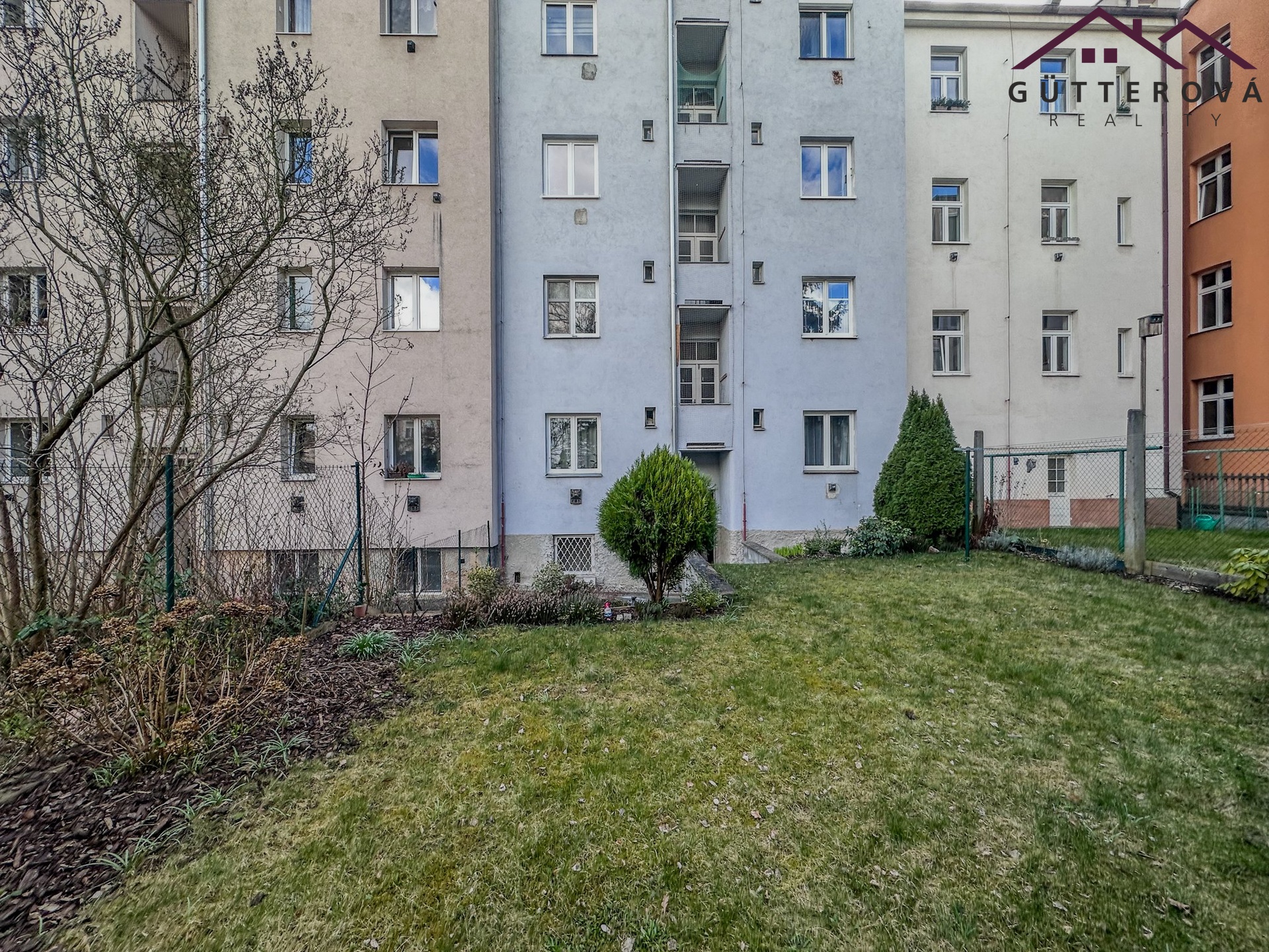 K dispozici je lodžie v mezipatře, sklepní kóje a zahradu ve vnitrobloku lze též užívat.