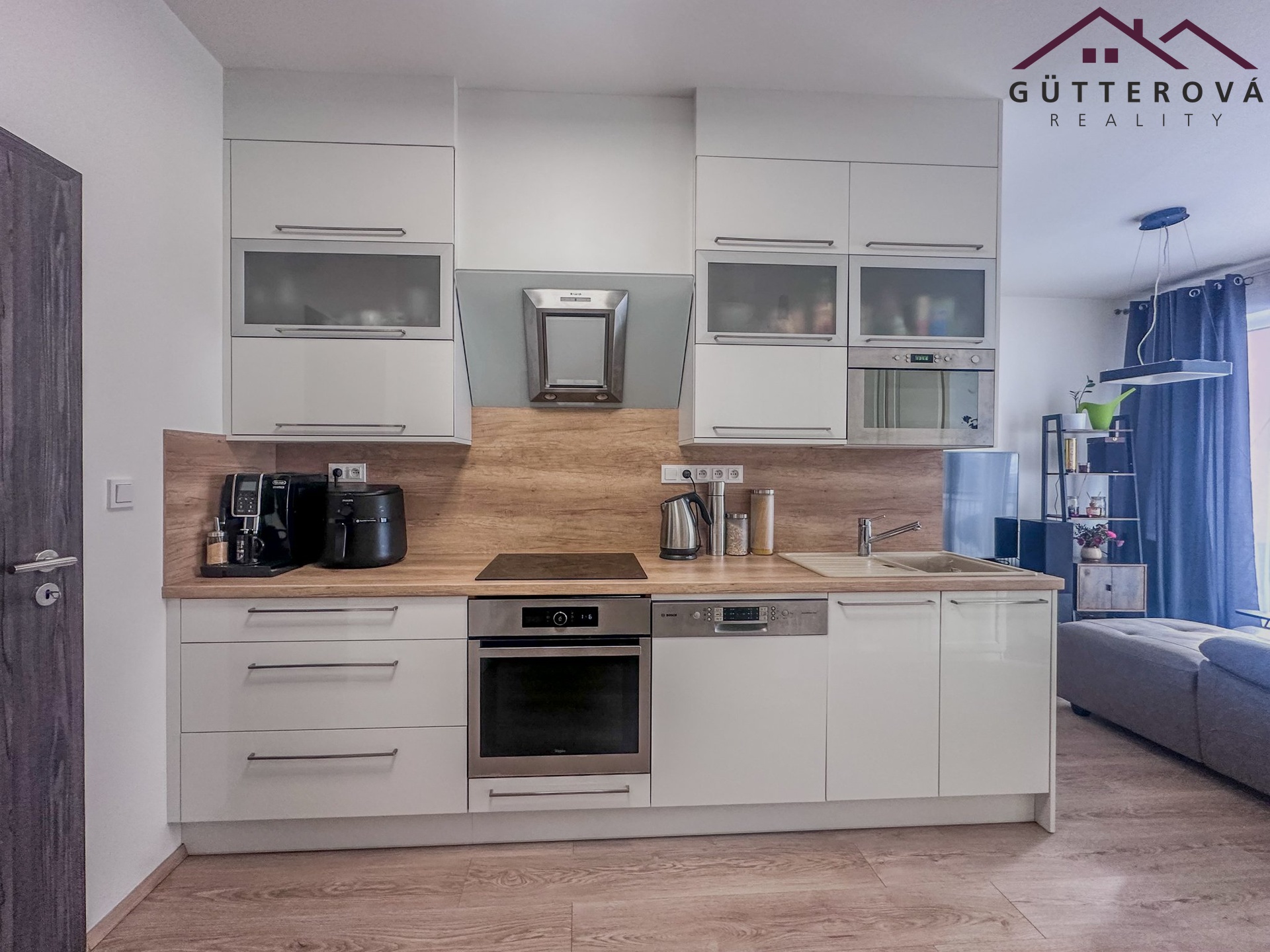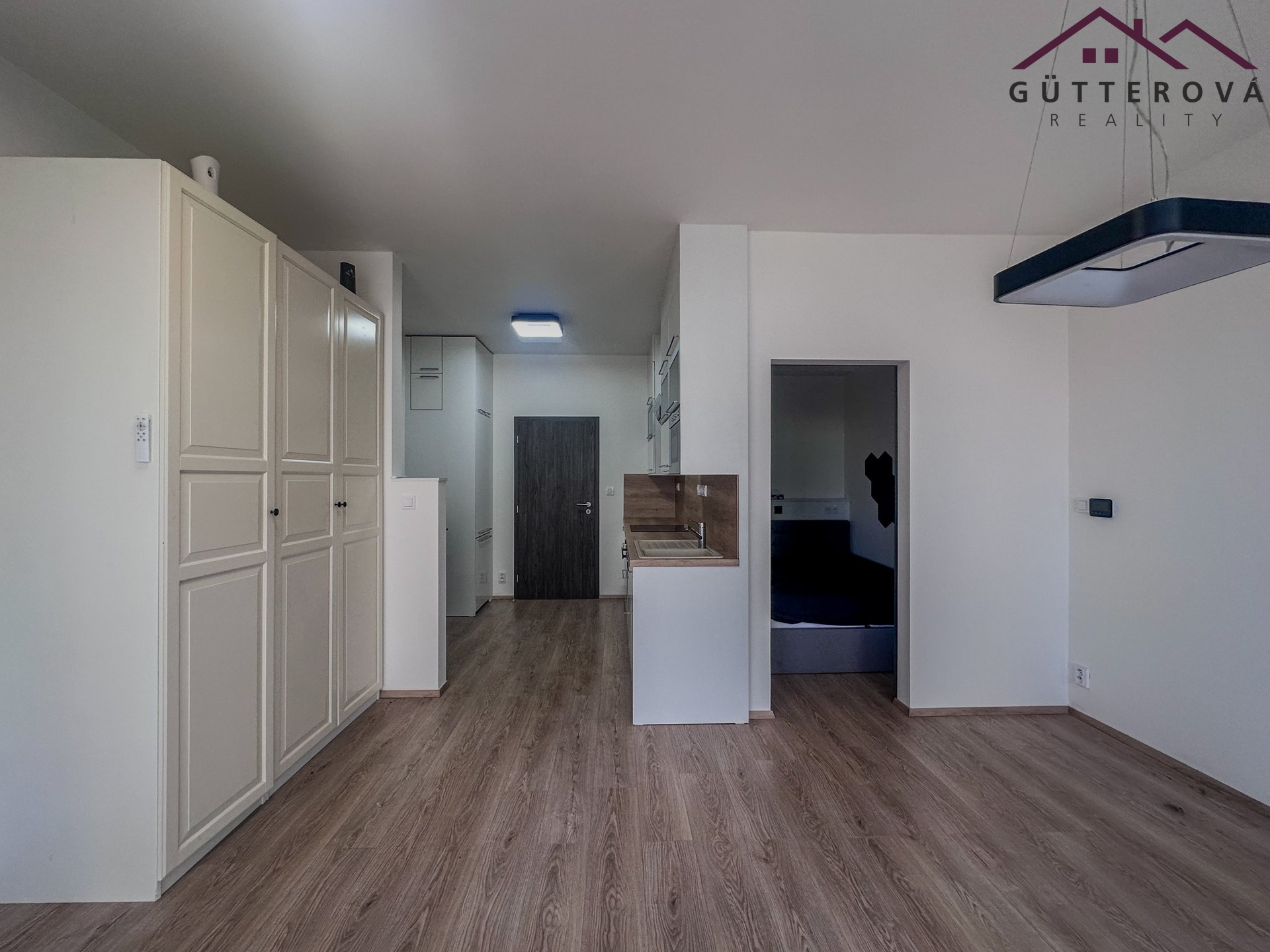 Součástí pronájmu je vestavěná skříň na chodbě, kompletně zařízená kuchyně (myčka, indukce, trouba, lednice s mrazákem),