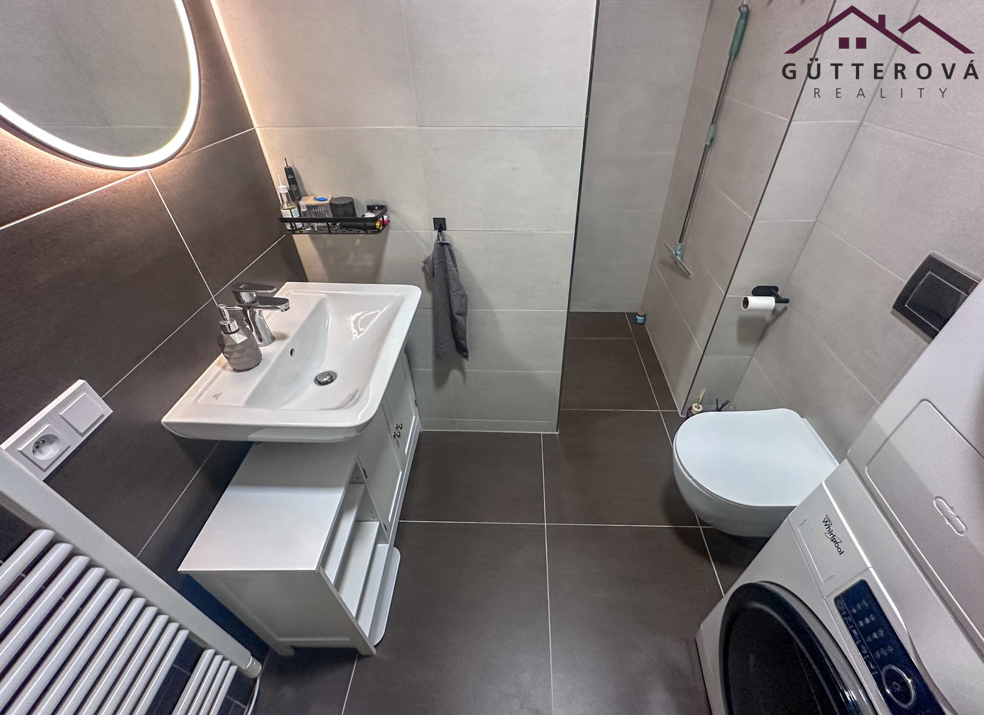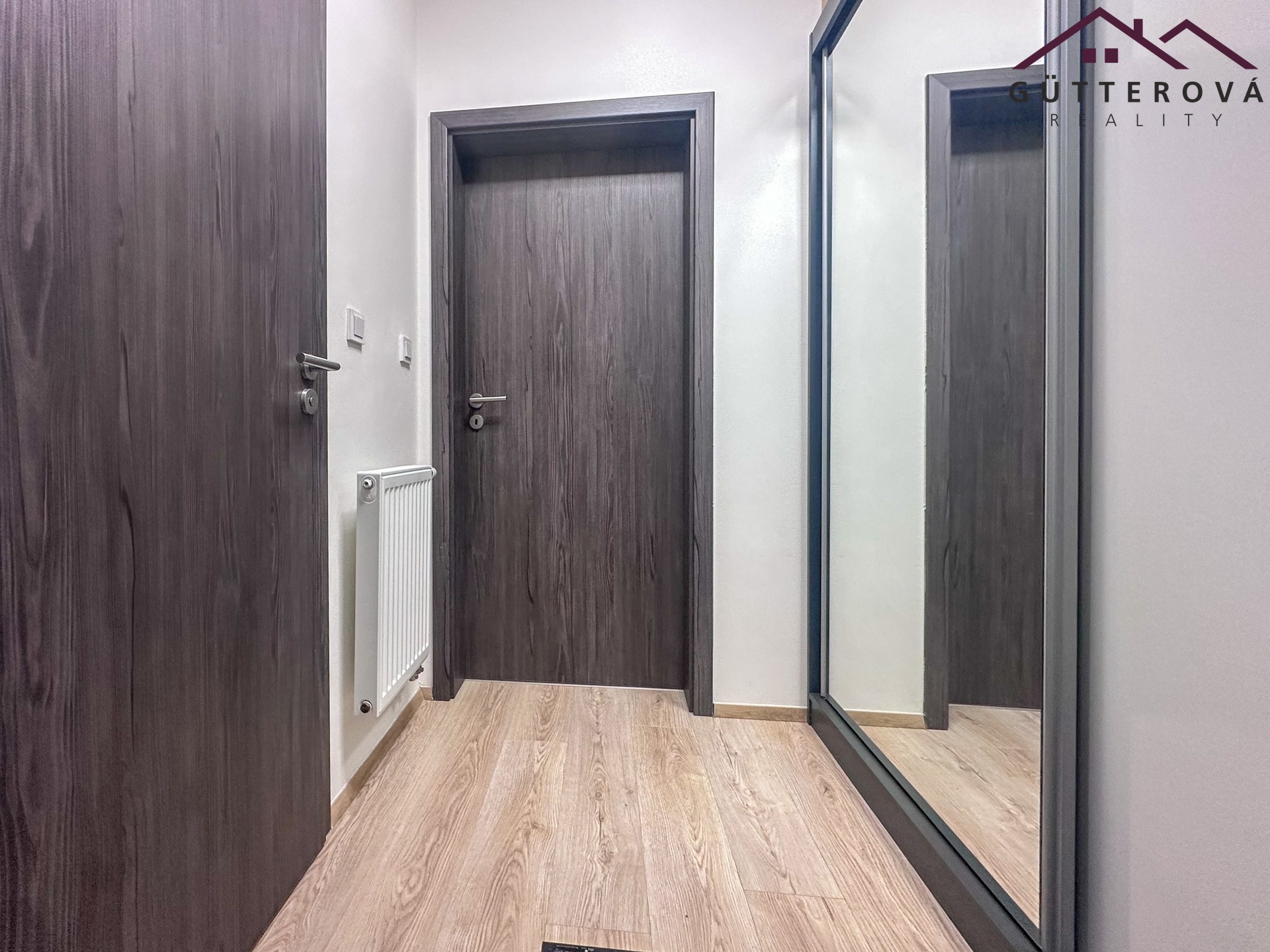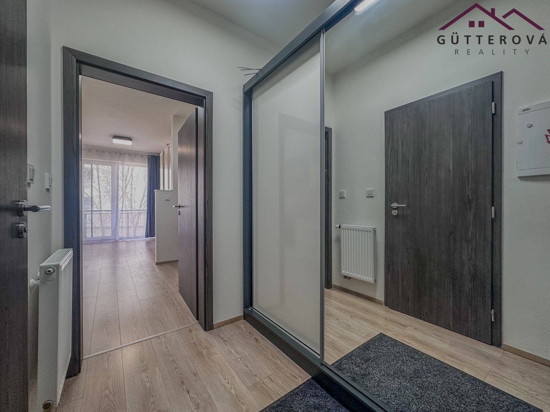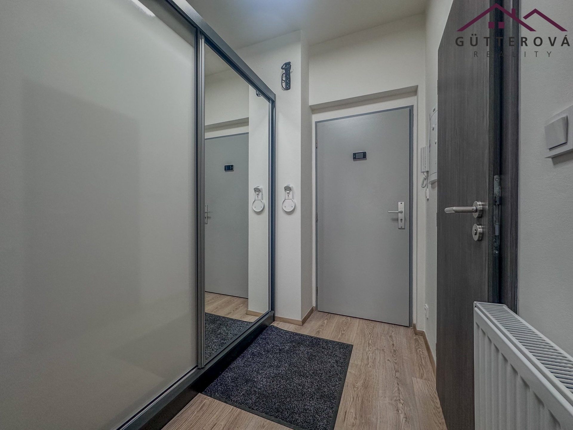 Bytová jednotka je umístěna do 2. NP novostavby s výtahem a tvoří ho chodba s vestavěnou skříní, moderní koupelna s WC a sprchovým koutem.