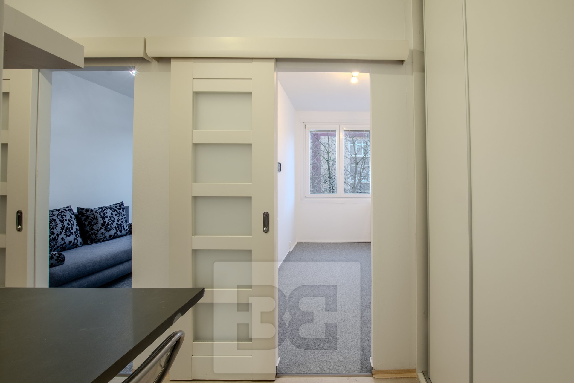 Byt je nabízen jako částečně vybavený, přičemž nábytek je možné po dohodě odstěhovat. Dispozice bytu nabízí dva samostatné neprůchozí pokoje a oddělenou kuchyň vybavenou spotřebiči. Součástí kuchyňské části je také vestavěná skříň, která poskytuje praktický úložný prostor.