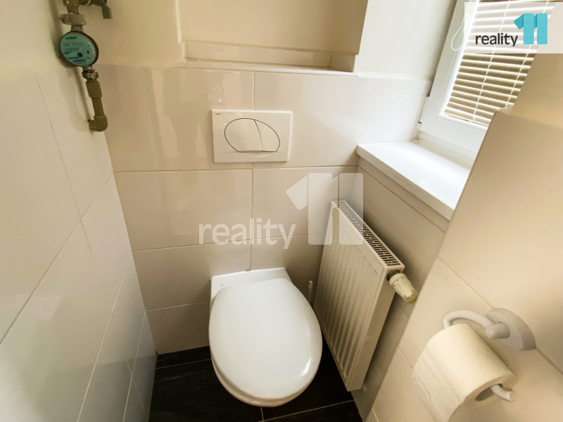 Dispozice bytu: kuchyně se spíží na potraviny a prostorem pro jídelní stůl, z kuchyně je vstup do obývacího pokoje a z něj dále do ložnice. Okna z obývacího pokoje a ložnice jsou orientována do klidného vnitrobloku. V předsíni je výklenek vhodný pro šatní skříň a vstup do koupelny a na samostatné WC. Součástí pronájmu je také sklepní kóje v suterénu domu.