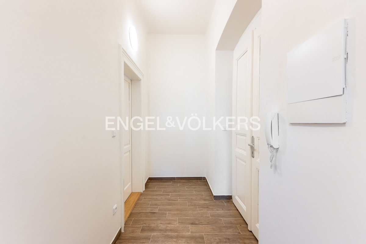 Podlahy v bytě: vinylové, dřevěné parkety. Okna orientovaná do ulice jsou dřevěná špaletová, do dvora dřevěná s dvojsklem. Dům se nachází v těsné blízkosti MHD.