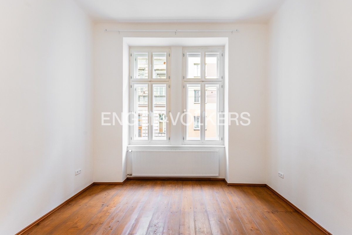Podlahy v bytě jsou dřevěné. Okna orientovaná do ulice jsou dřevěná špaletová. Dům se nachází v těsné blízkosti MHD.
