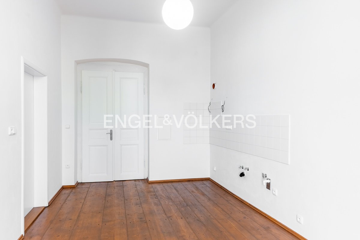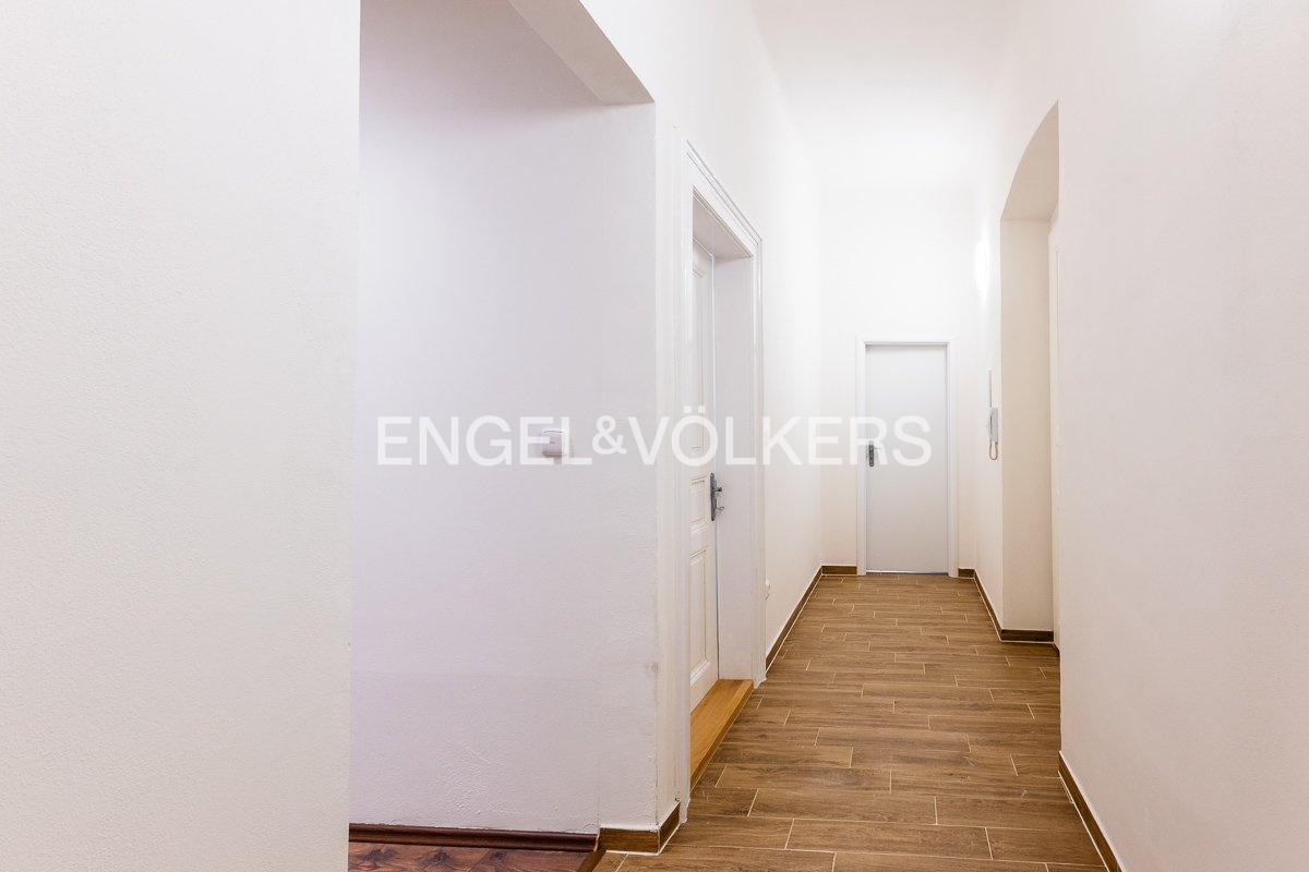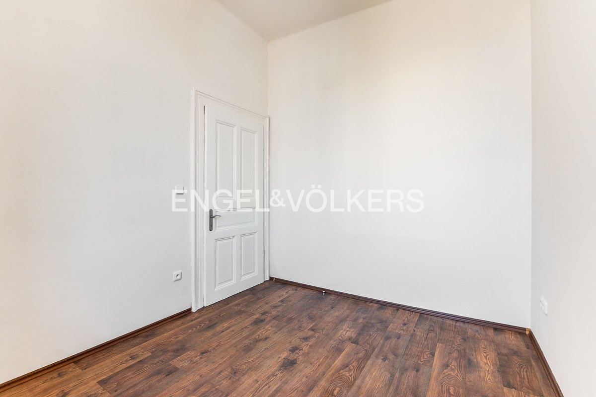 Z této místnosti je vstup do posledního pokoje (22,3 m²). Dále se na chodbě nacházejí dvě samostatná místa pro úložný prostor (2,67 a 1,61 m²). Podlahy v bytě jsou kombinací dřeva, vinylu a dlažby. V největším pokoji jsou okna dřevěná špaletová s orientací do ulice, v ostatních místnostech dřevěná dvojskla s výhledem do dvora. Dům se nachází v těsné blízkosti MHD.