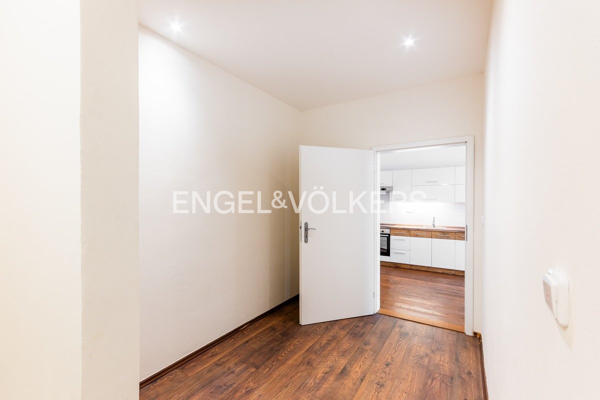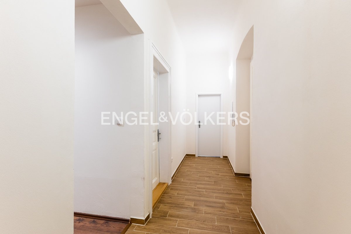 Byt disponuje dvěma prostory pro šatnu (2,67 a 1,61 m²). Podlahy v bytě jsou kombinací dřeva a vinylu. V největším pokoji jsou okna dřevěná špaletová orientovaná do ulice, v ostatních místnostech dřevěná okna s dvojskly s výhledem do dvora. Dům se nachází v těsné blízkosti MHD.