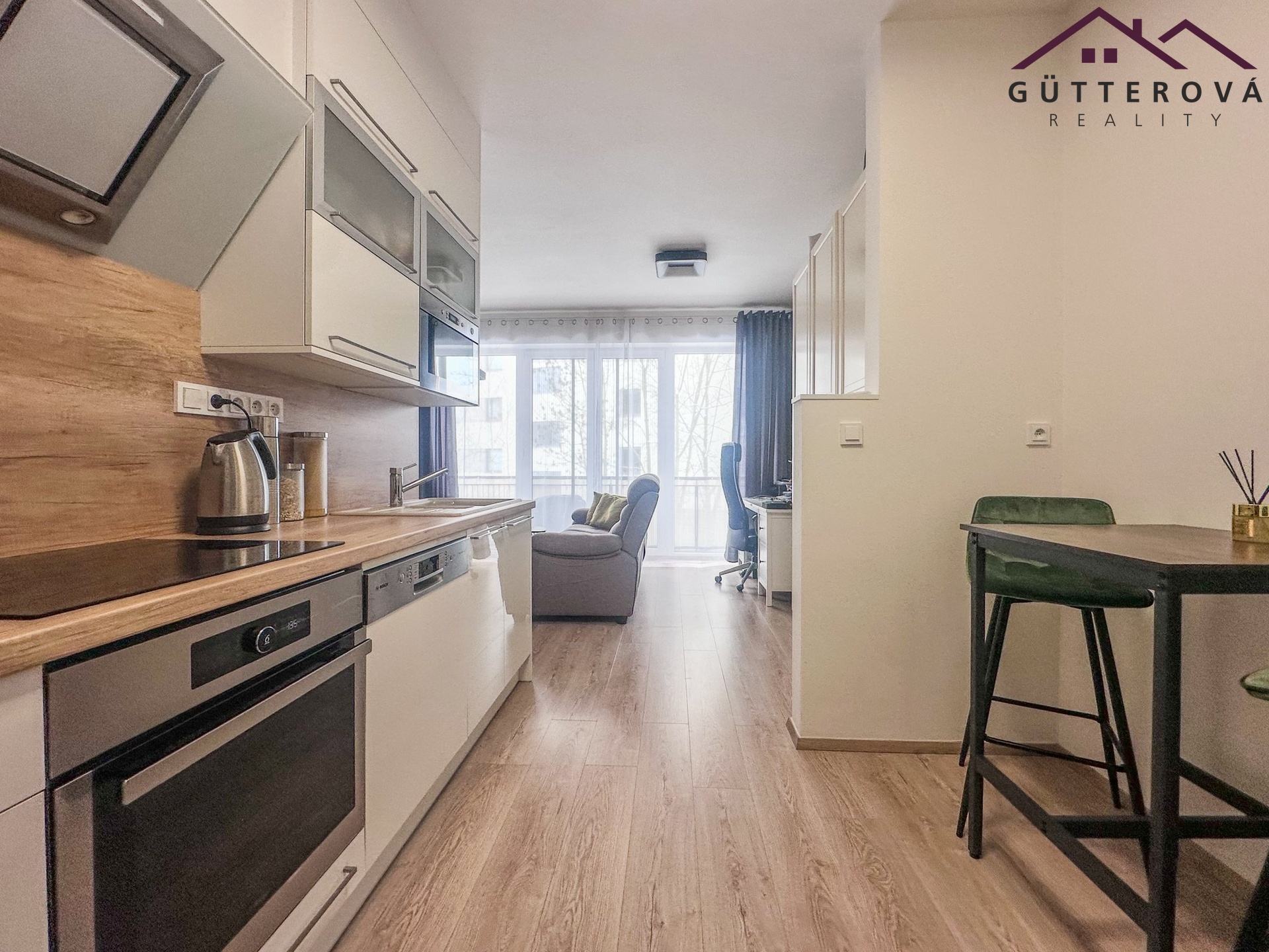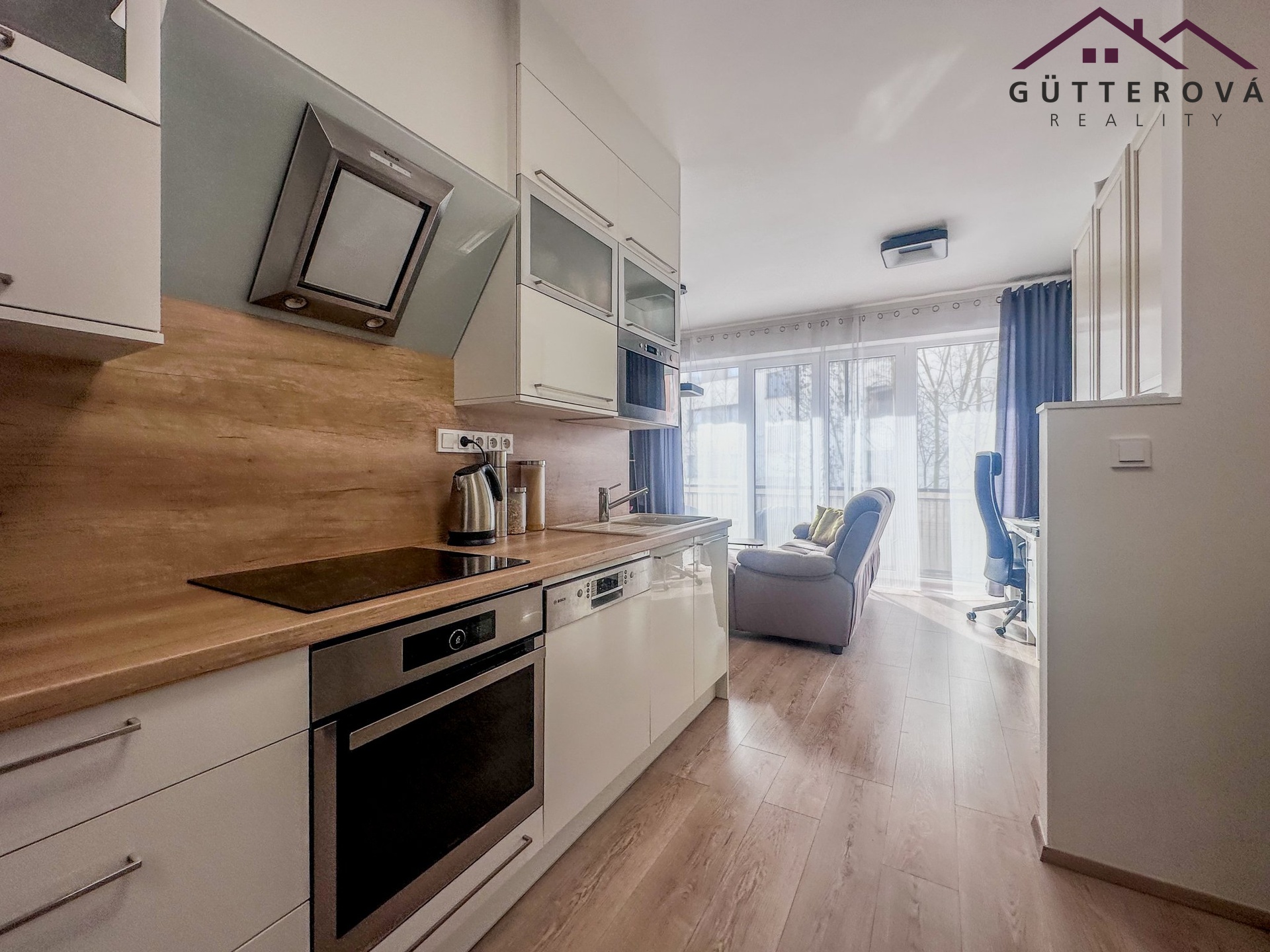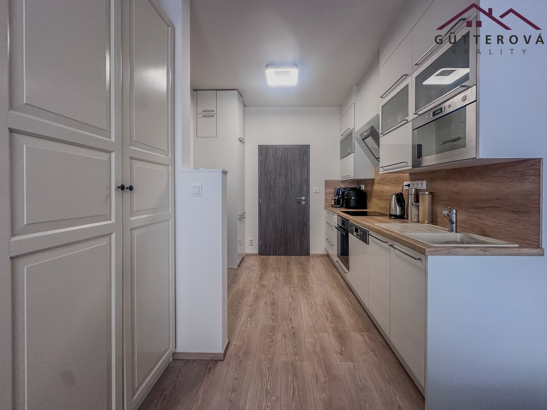 Součástí pronájmu je vestavěná skříň na chodbě, kompletně zařízená kuchyně (myčka, indukce, trouba, lednice s mrazákem),