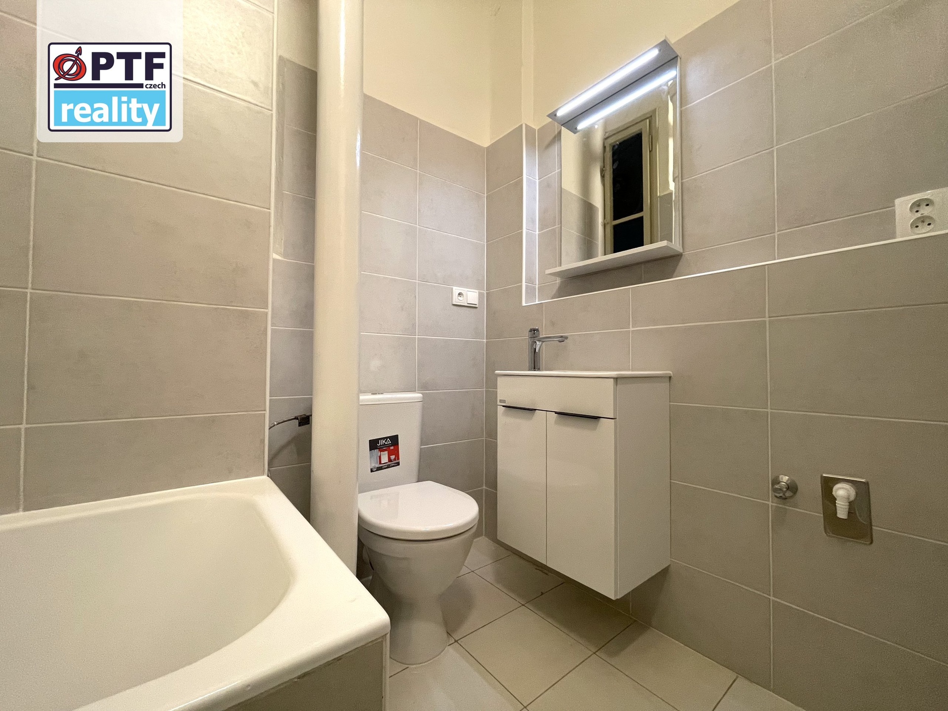 Koupelna je vybavena vanou a toaletou.