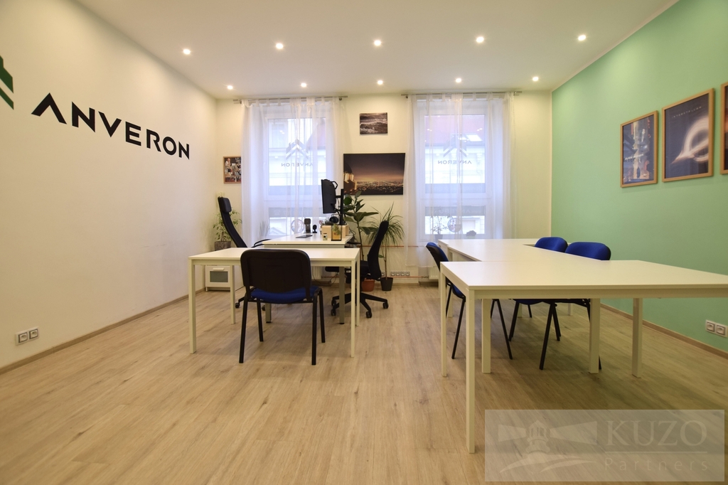 Kancelář je velmi vzdušná díky velkým oknům a dostatku denního světla. Lokalita Jagellonská nabízí dobrou dostupnost, občanskou vybavenost v okolí (obchody, kavárny, služby) a příjemné prostředí pro klientské schůzky. Snadná dostupnost MHD je samozřejmostí.