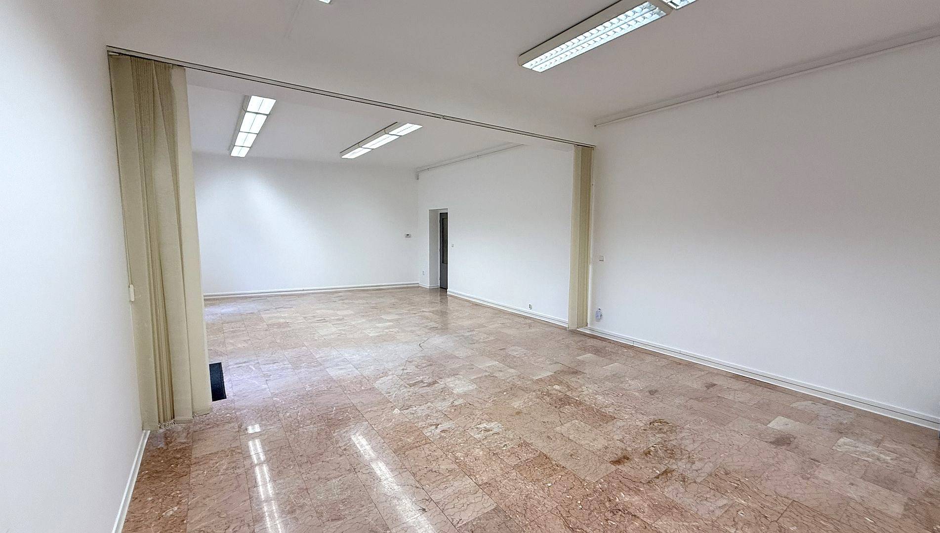 Hlavní kancelář má 56 m², zázemí tvoří kuchyňka a sociální zařízení o velikosti 15 m² a k dispozici je také garážové stání o ploše 12 m². Celková podlahová plocha tak činí 83 m² a užitná plocha 71 m², což poskytuje dostatek místa pro pohodlné a efektivní pracovní prostředí. Objekt byl zkolaudován v roce 2001 a jeho moderní design splňuje všechny nároky na komfortní kancelářské zázemí.