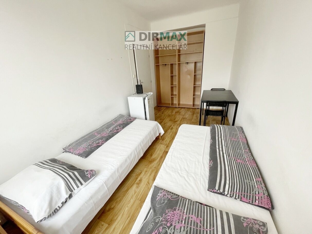 Ve výhradním zastoupení Vám nabízíme pronájem studentského pokoje v bytě (buňce), kdy při vstupu je menší předsíně, ze které se vstupuje do dvou místností samostatně a vše je neprůchozí. Každý pokoj je vybavený dvěma lůžky, skříněmi, nočními stolky, jídelním stolem se židlemi. Maximální počet osob v rámci jednoho bytu/buňky - 4. V každém pokoji je menší lednička s mrazáčkem. Vlastní sociální zařízení. Koupelna je od toalety oddělená, samostatný vstup. Jádro je zděné. V koupelně je sprchový kout a další sanitární keramika. Vše je vzájemně neprůchozí. Kuchyň je společná.