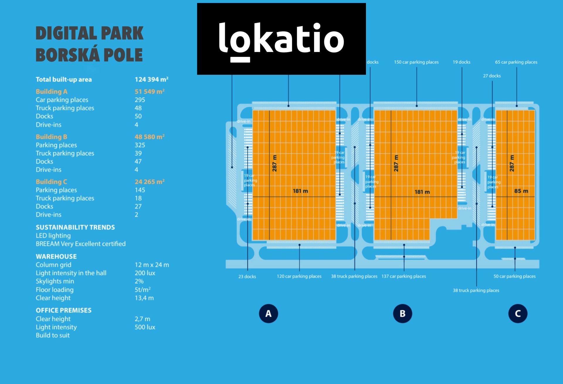 Nabízíme k pronájmu prostory v moderním průmyslovém parku budovaném na Borských polích v Plzni. Jedná se jedny z nejmodernějších industriálních prostor v ČR plně uzpůsobené pro Průmysl 4.0. Prostory mohou být využity pro skladování, výrobu či výzkumné nebo prodejní účely.