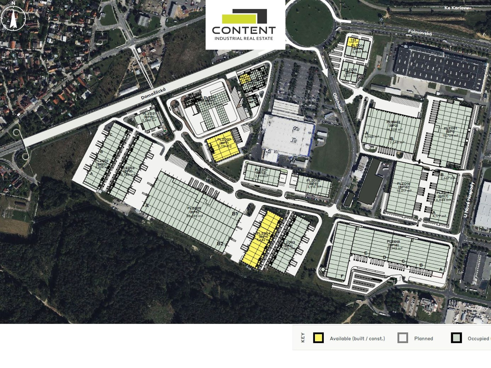 - možné dělit na menší jednotky od cca 3000 m², informujte se,