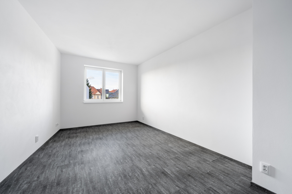 Dispozice zahrnuje obývací pokoj s kuchyňským koutem, ložnici, předsíň a koupelnu s toaletou. K bytu náleží sklepní kóje (2 m2).