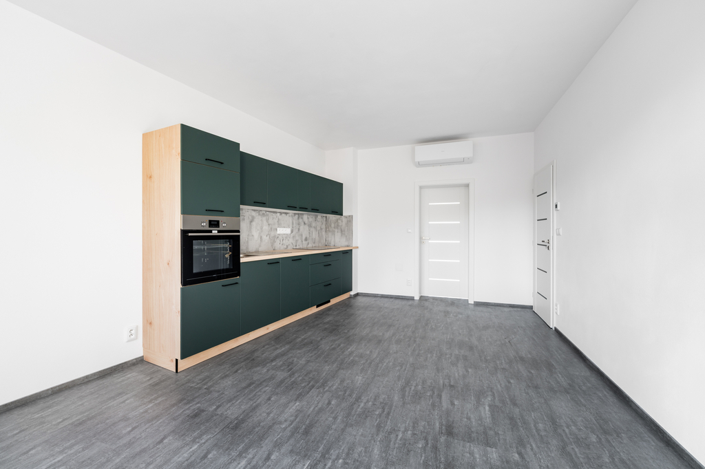 Součástí vybavení je moderní kuchyňská linka s vestavnou elektrickou troubou, sklokeramickou varnou deskou, digestoří a myčkou nádobí. Byt je dále vybaven koupelnovým nábytkem, kompletním LED osvětlením a venkovními žaluziemi v obývacím pokoji.