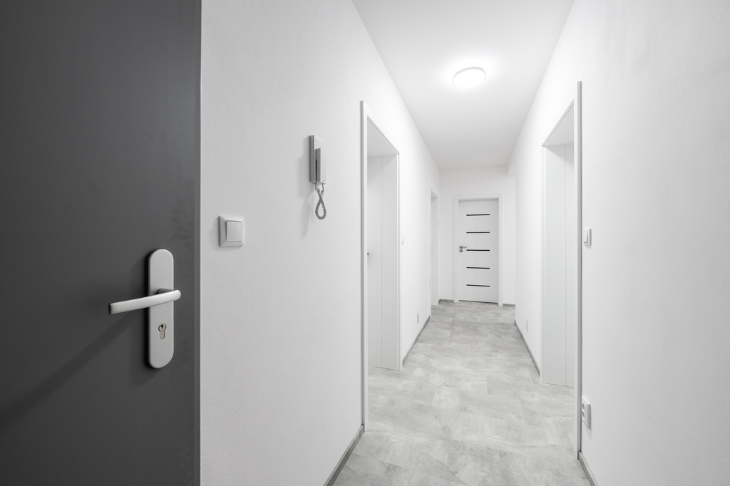 Pro zjištění rozměrů místností a objektů v prostoru využijte možnost měření ve virtuální prohlídce pomocí ikony pravítka v levém dolním rohu.