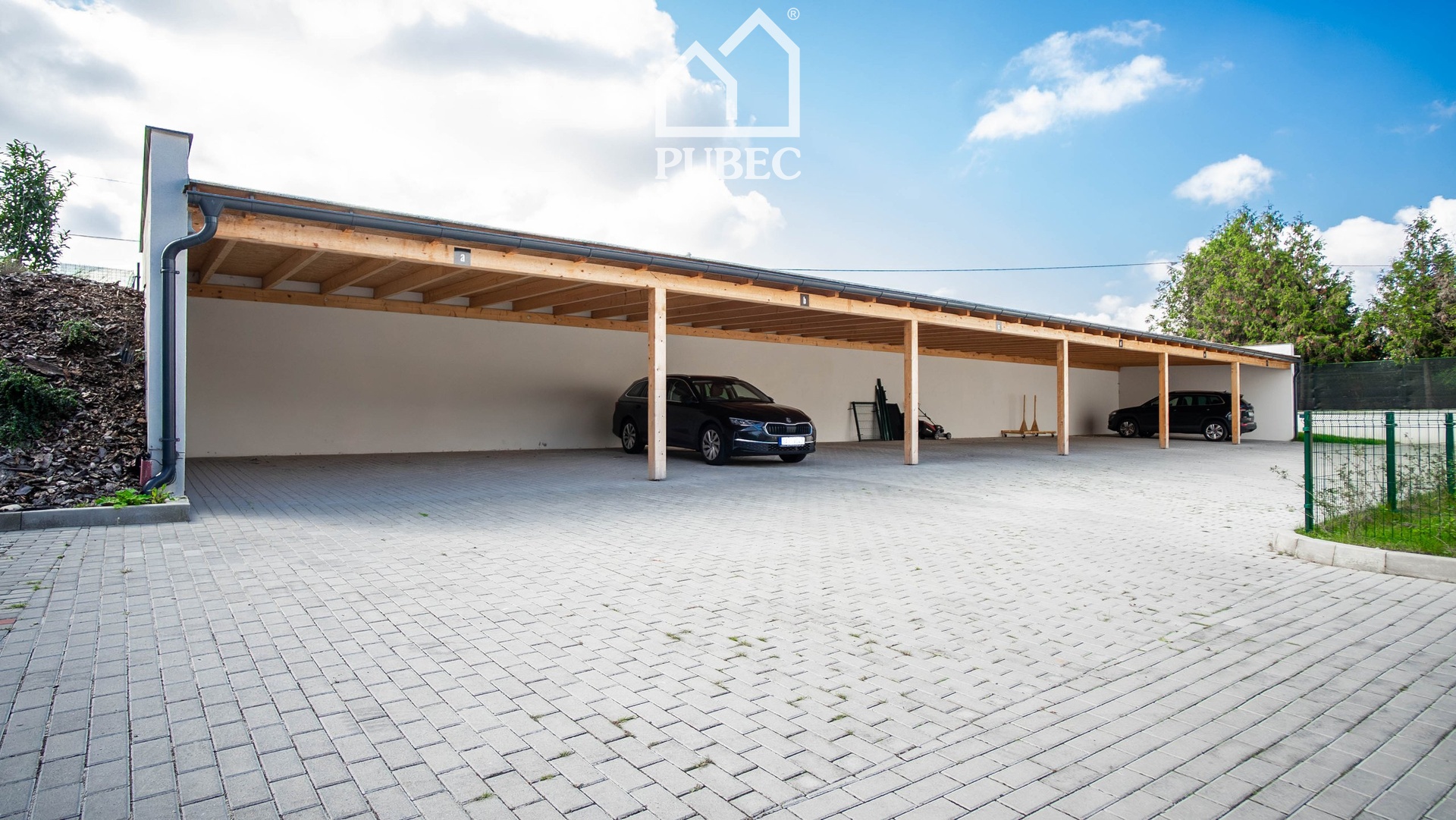 - 2 krytá parkovací stání v rámci oploceného areálu (s možností budoucí úpravy na garáž)