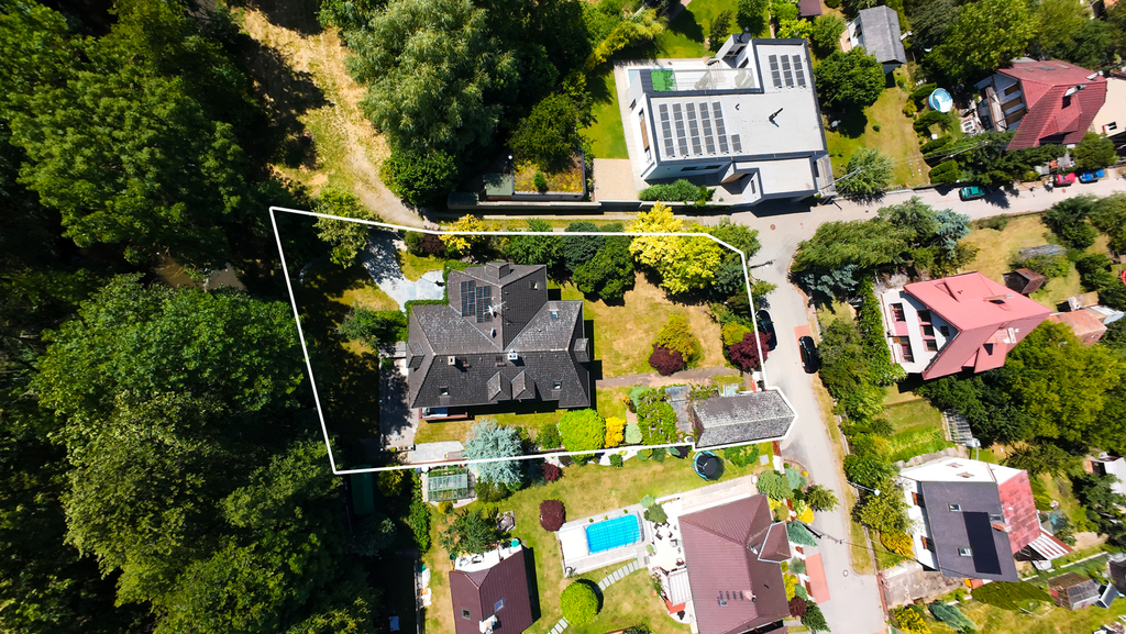 Působivá zahrada se vzrostlými okrasnými stromy nabízí dostatek soukromí a klidu v této exkluzivní lokalitě. Vše je umocněno tím, že se dům nachází na okraji zástavby v jehož přímém sousedství se již nedá stavět.