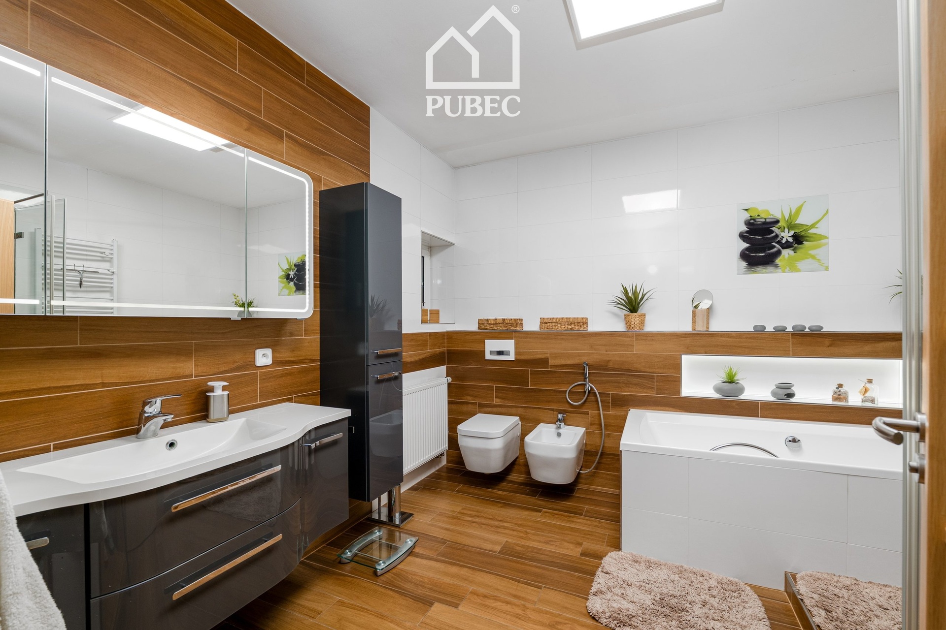Koupelny: komfortně řešené, v přízemí s vanou i sprchovým koutem, v patře sprchový kout
