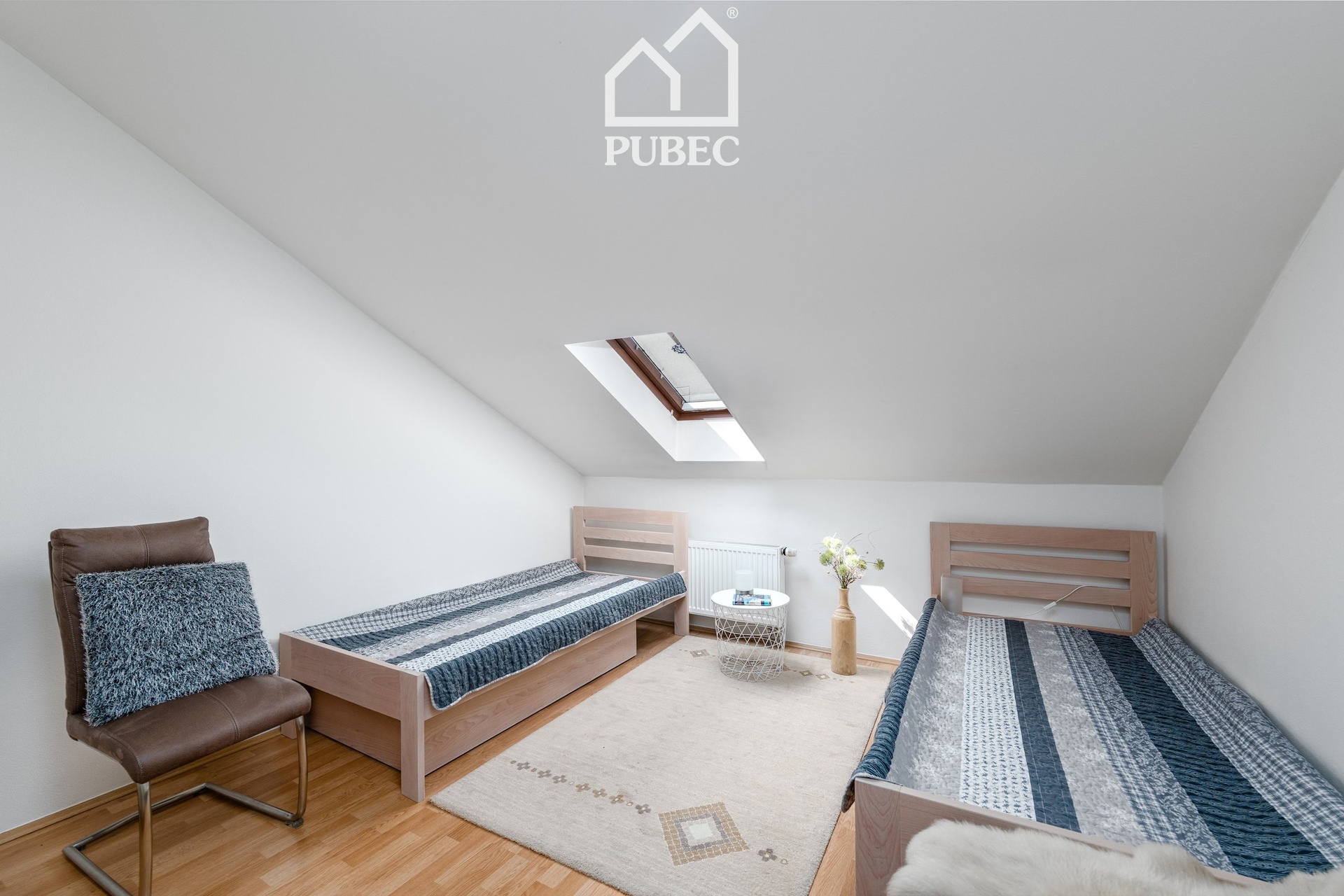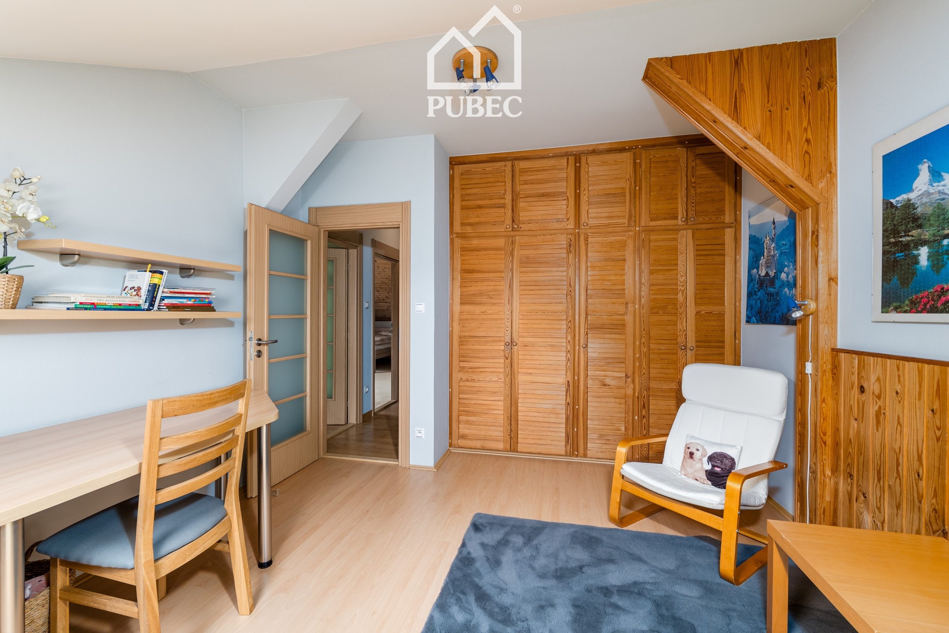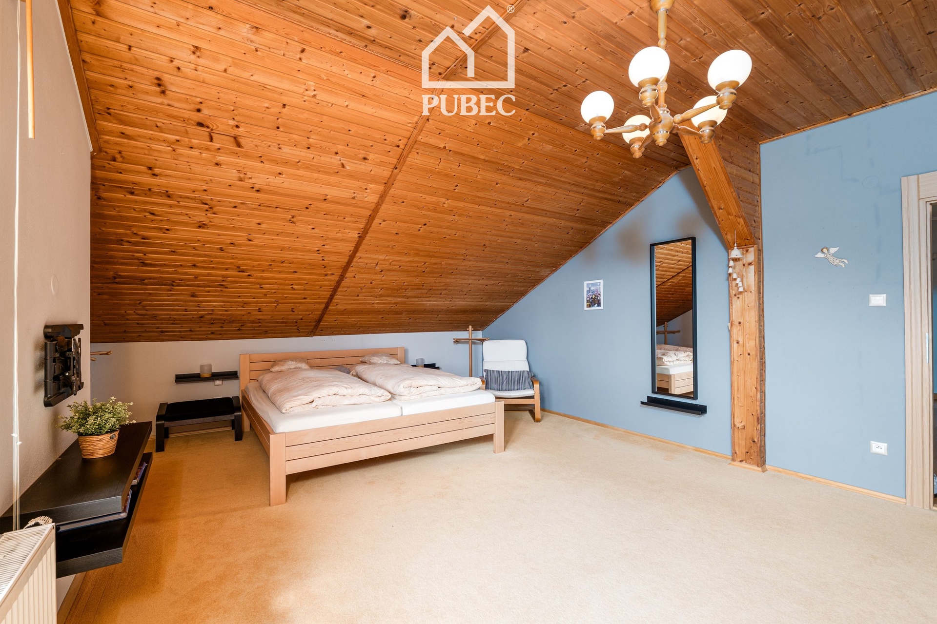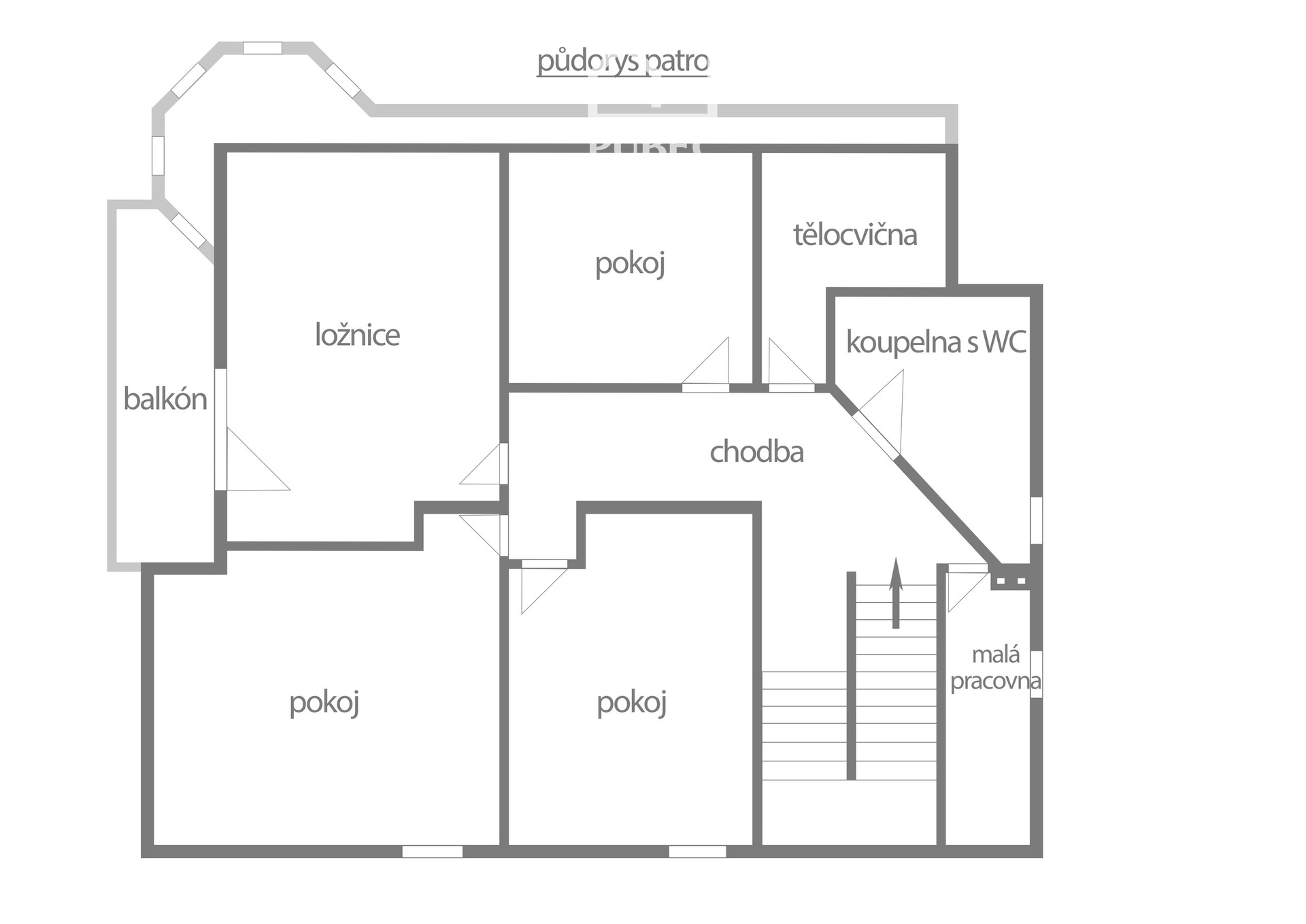Podkroví: 4 samostatné neprůchozí pokoje - jeden s přístupem na balkon, telocvična, koupelna, sklad