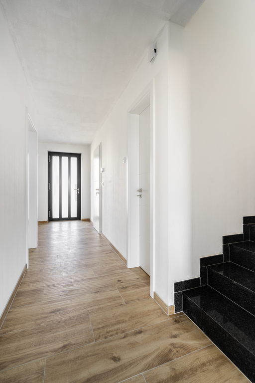 Rodinný dům postavený z broušených cihelných bloků s tepelnou izolací, je v nadstandardním provedení, které zahrnuje kvalitní plastová okna a posuvné dveře (HS portál) s izolačním trojsklem, venkovní žaluzie u velkoformátových oken, bezpečnostní vchodové dveře a interiérové dveře v nadstandardní výšce, podlahové teplovodní vytápění v celém interiéru s možností regulace v každé místnosti, vinylové podlahy v kombinaci s keramickou dlažbou, obklady i sanitu od renomovaných výrobců a moderní kuchyňskou linku včetně vestavných spotřebičů. Kvalitu provedení podtrhuje schodiště ze žulové dlažby a klimatizace ve všech pokojích. Vytápění i ohřev vody zajišťuje plynový kotel.