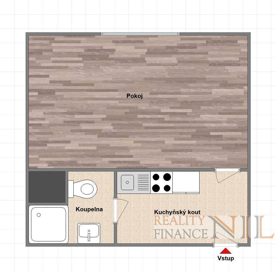 | Dispozice/podlahová plocha: | 1+kk/21 m² |