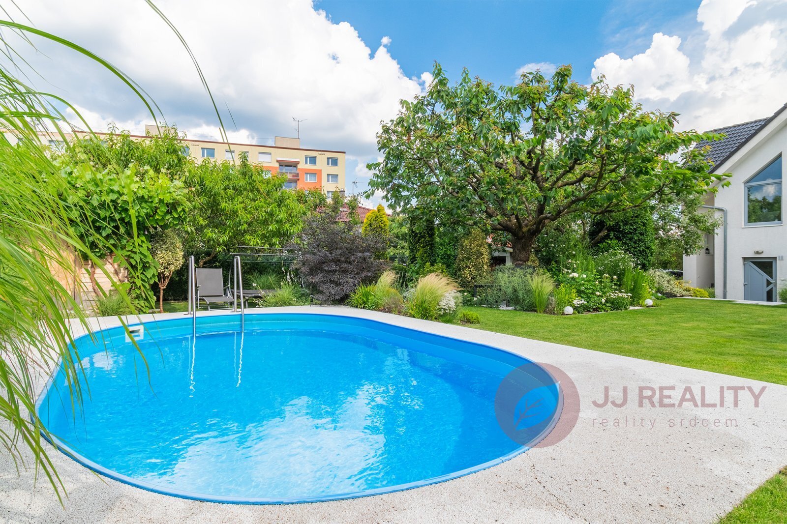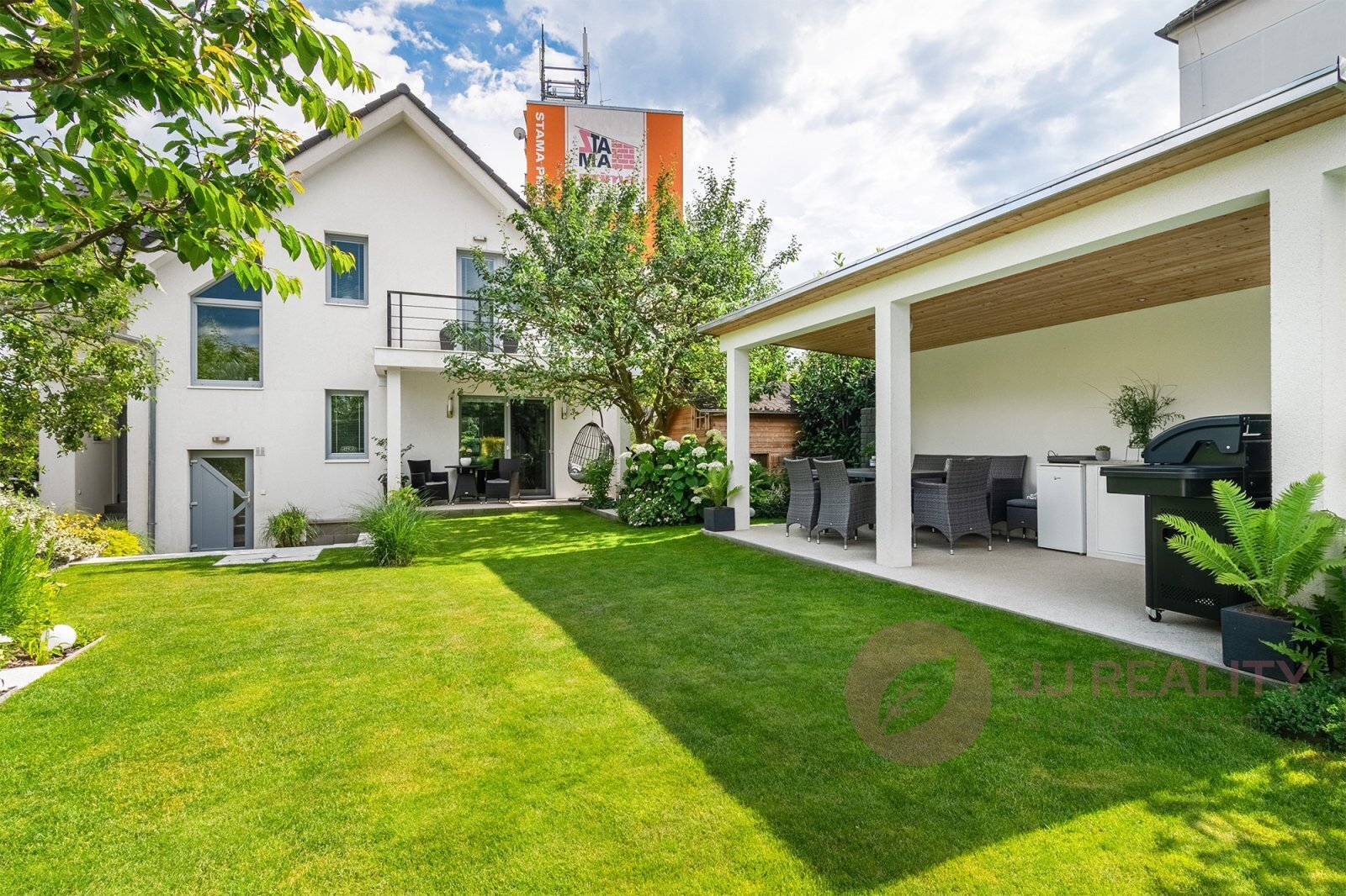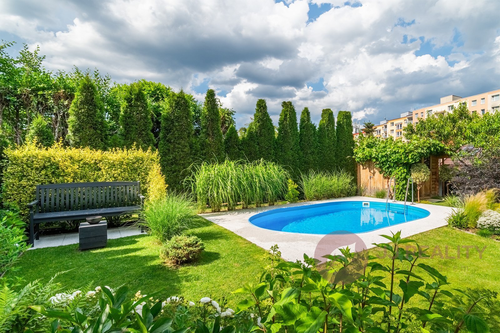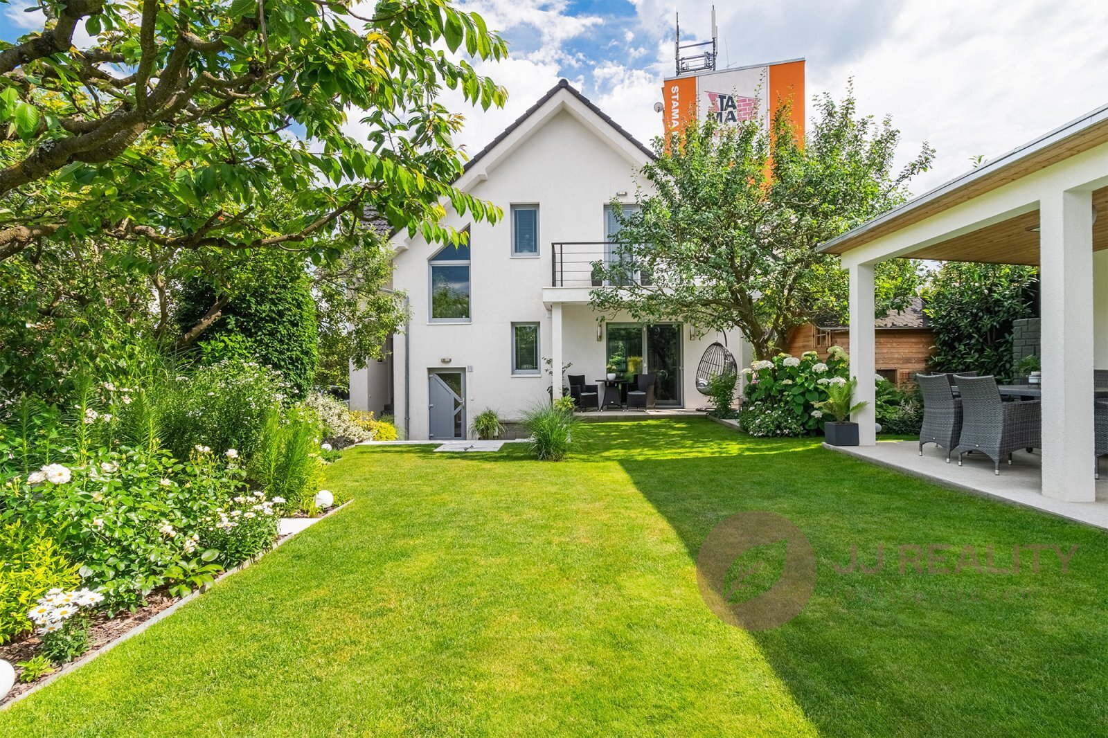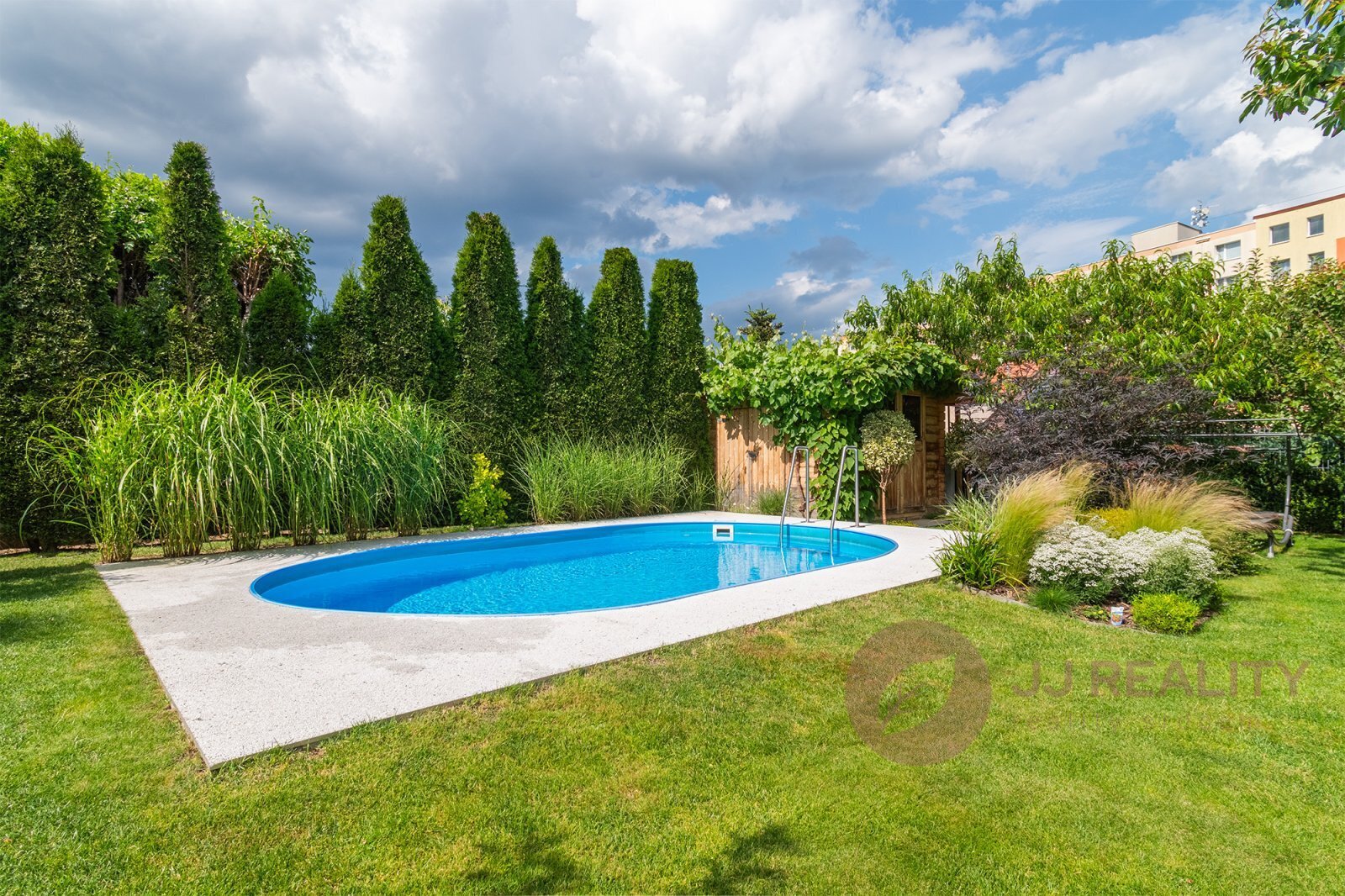 Před domem se rozprostírá malebná užitková zahrádka se skleníkem, zatímco za domem čeká překrásná rovinatá zahrada o rozloze 426 m² se zapuštěným bazénem a zahradním domkem.Na zahradě najdete také prostorné zastřešené posezení s vestavěnou venkovní kuchyní a zvukem vodopádu, který dodává zahradě kouzelnou atmosféru.