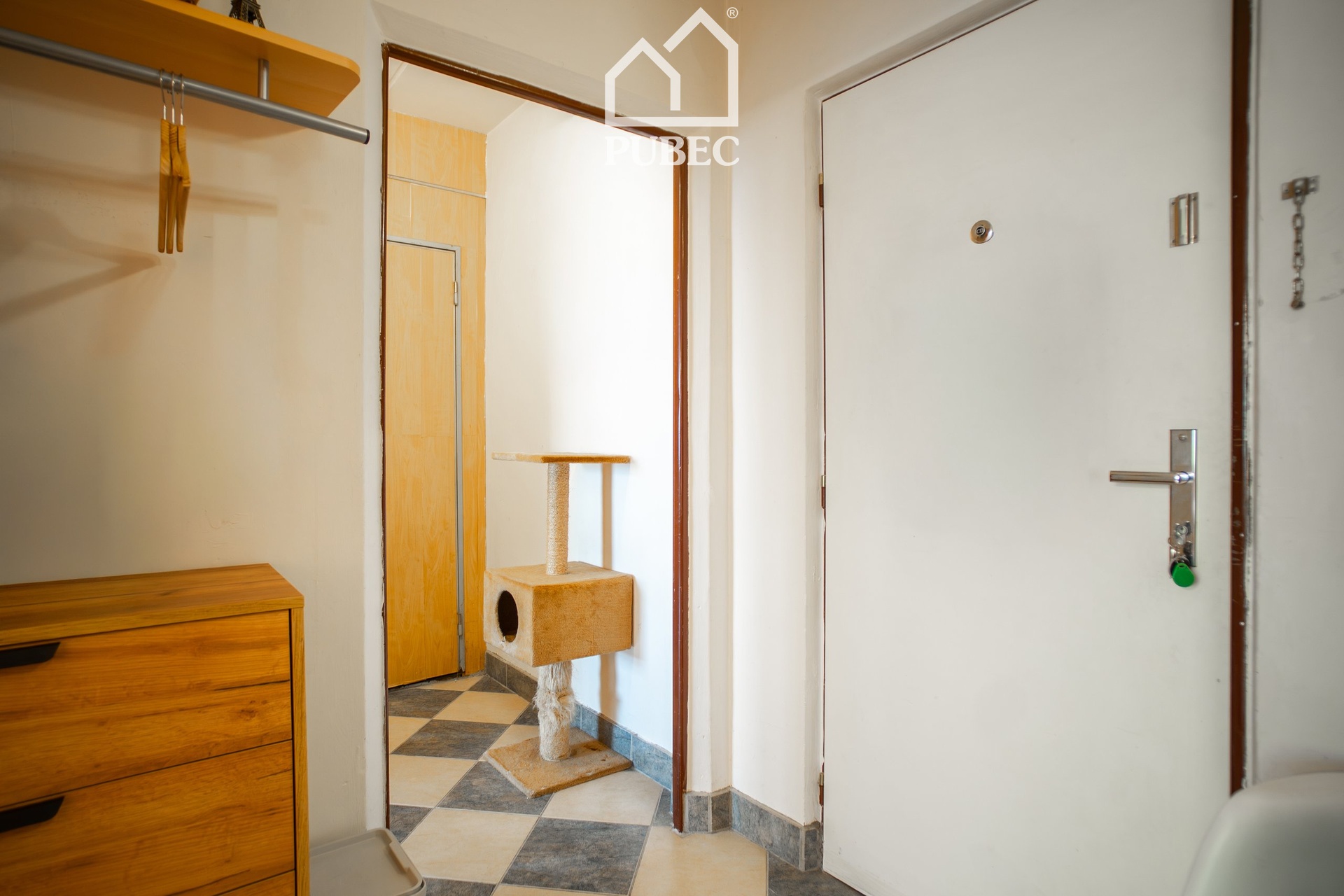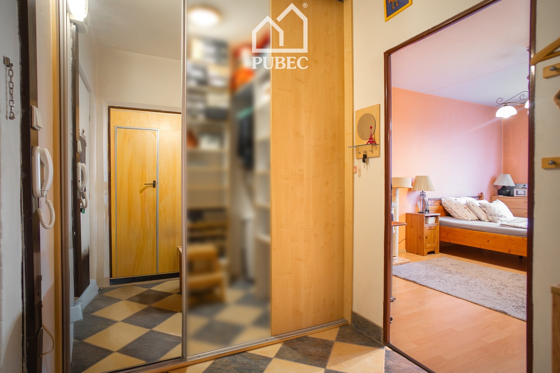 Členění: Vstupní předsíň, praktická šatna, prostorná ložnice a světlý obývací pokoj s kuchyňským koutem.