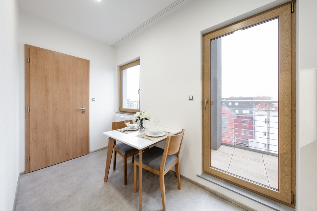 K dlouhodobému pronájmu nabízíme byt 1+1 (38 m2) s terasou (9 m2) v Plzni na Slovanech, ulice Radyňská. Bytová jednotka se nachází v nejvyšším 6. nadzemním podlaží zatepleného cihlového domu a poskytuje příjemný výhled do zeleně přilehlého parku na Jiráskově náměstí.