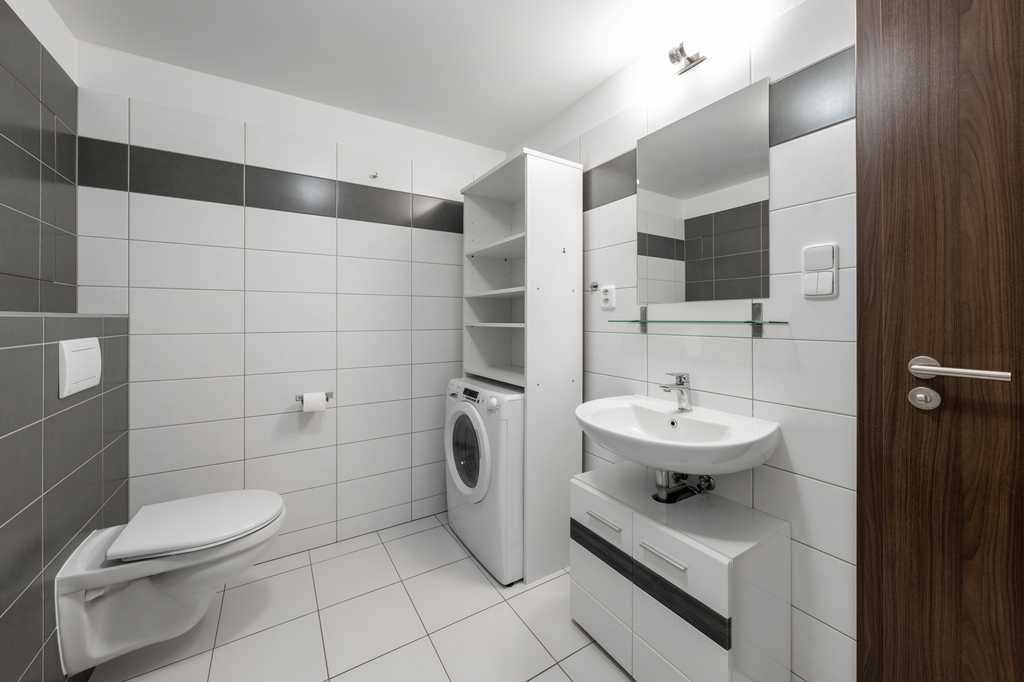 Byt je vybaven moderní kuchyňskou linkou včetně vestavné elektrické trouby, indukční varné desky, digestoře, myčky nádobí, dále samostatně stojící ledničkou s mrazákem, jídelním stolem s židlí, policovou skříňkou, dvěma policovými díly, pohovkou, konferenčním stolkem, postelí s matracemi, botníkem, věšákem, koupelnovým nábytkem a pračkou se sušičkou.