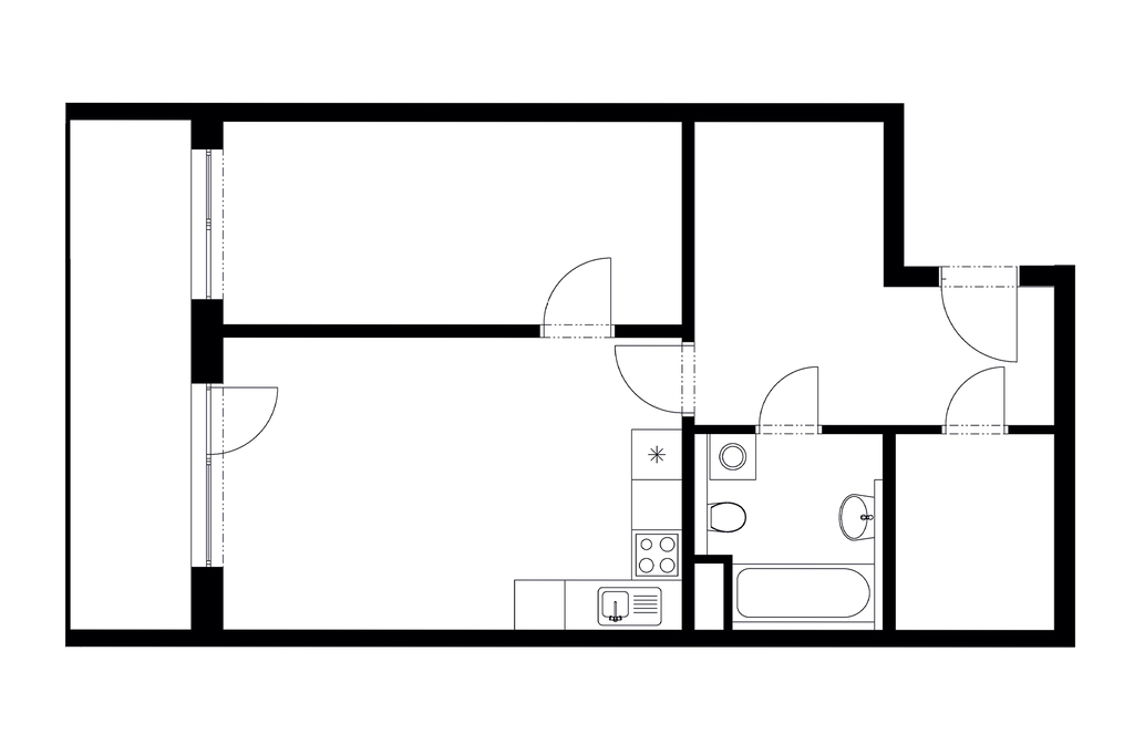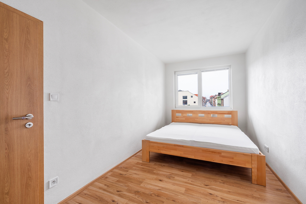 Dispozice bytu zahrnuje obývací pokoj s kuchyňským koutem, ložnici, prostornou předsíň, koupelnu a samostatnou toaletu. Terasa přístupná z obývacího pokoje se rozpíná po celé šířce bytu.