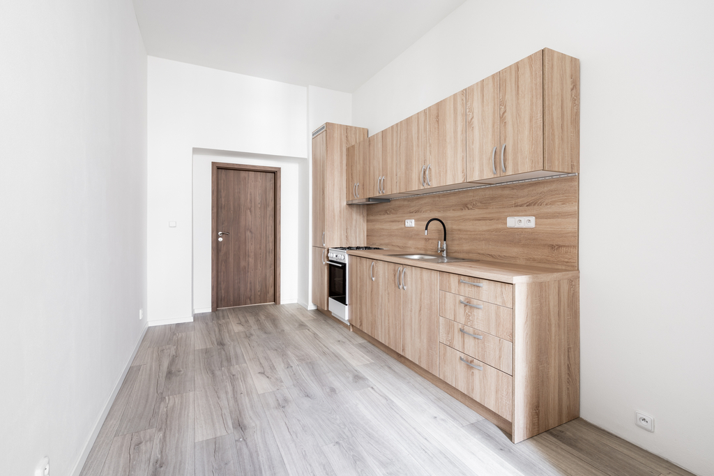 Součástí vybavení je nová kuchyňská linka včetně kombinovaného sporáku a digestoře. Myčka nádobí není součástí vybavení, avšak je možné ji do kuchyňské linky snadno doplnit vyjmutím jedné ze spodních skříněk. Okna jsou opatřena vnitřními žaluziemi.