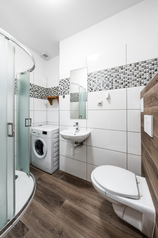Součástí vybavení je kuchyňská linka včetně vestavné elektrické trouby, sklokeramické varné desky, digestoře, myčky nádobí a mikrovlnné trouby.