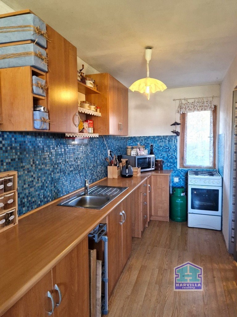 Nabízíme Vám ke koupi rekreační objekt o celkové obytné ploše cca 65 m2, který se nachazí na okraji malebného městečka Poběžovice, vzdálené 15 km od Domažlic a 12 km od Horšovského Týna. Dřevěný rekreační objekt prošel před cca 15ti lety částečnou rekonstrukcí (vyzděná koupelna s WC, kuchyňská linka, rozvody elektřiny, nová krytina střechy, zateplení podlah, krytiny podlah, venkovní pergola). Dispozice objektu tvoří kuchyně s linkou, obývací pokoj s krbovými kamny, ložnice a koupelna se sprchovým koutem, umyvadlem a WC. Součástí objektu je velká nedokončená garáž o velikosti 44 m2, která navazuje na obytnou část a lze přestavět na další obytné místnosti. Vytápění chaty zajišťují krbová kamna. Voda je přivedena z vlastního vrtu. Odpad je sveden do jímky na vyvážku. Na udržované, zatravněné zahradě stojí dřevěná pergola s udírnou a rostou zde ovocné a okrasné stromy či keře. Centrum města s veškerou občanskou vybaveností je vzdáleno 15 minut klidnou chůzí. Autobusové i vlakové spojení. Výborná příjezdová cesta. Objekt je vhodný k rekreaci nebo po investicích i k trvalému bydlení. Krásné, klidné místo v blízkosti malé říčky ,,Pivoňky“. Doporučuji prohlídku. Nemovitost lze též financovat pomocí hyp. úvěru, který Vám naše RK ráda zprostředkuje.