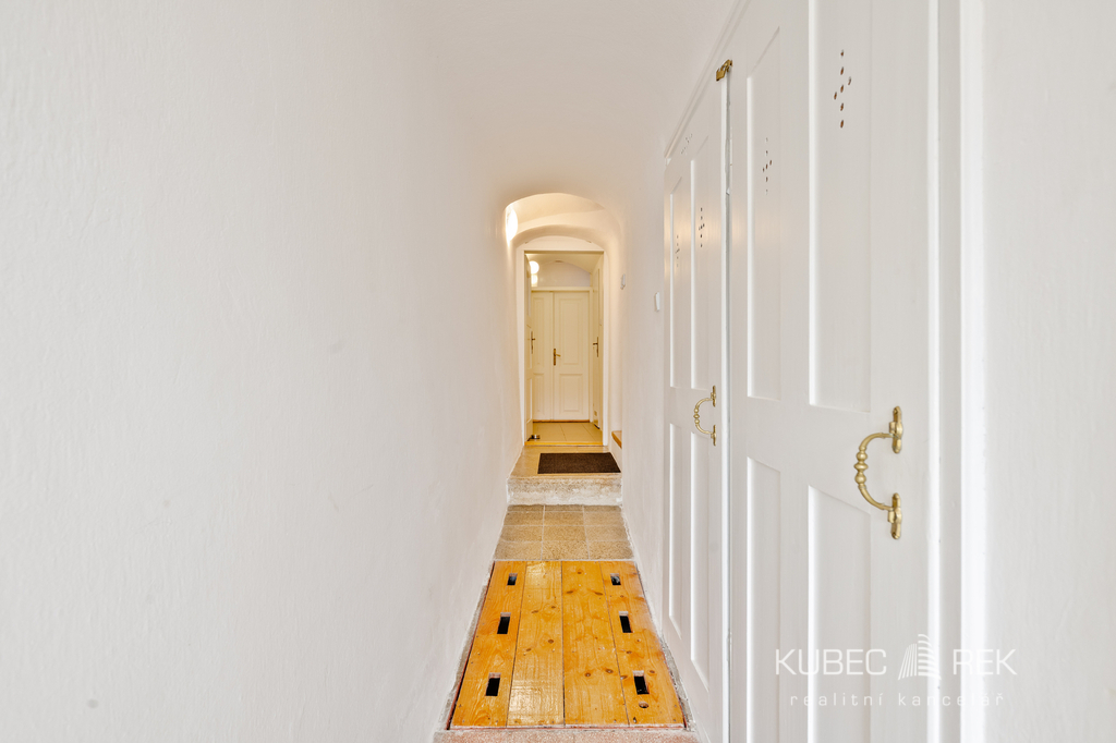 V přízemí se nachází prostorná kuchyně s jídelním koutem, koupelna, chodba a technická místnost. V patře je útulná ložnice s přístupem na půdu. Dům je z poloviny podsklepený. Interiér prošel rekonstrukcí – nové omítky, vinylové podlahy v kombinaci s dřevěnými parketami a moderní vybavení zajišťují pohodlné bydlení bez nutnosti dalších investic.