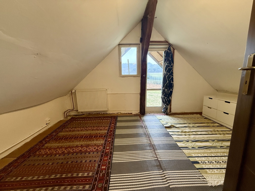 Z obývacího pokoje se dostanete do druhého patra, kdy jedna místnost je v současné době koncipována jako ložnice a druhá místnost je prázdná.