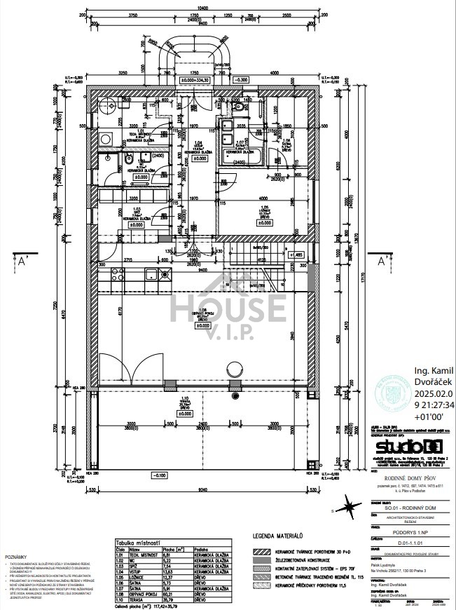 • 1. NP: 117,42 m² + terasa 35,79 m².