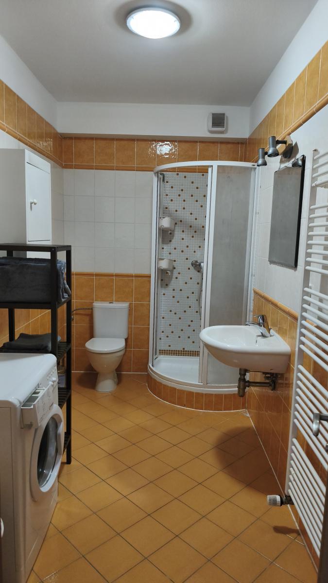 Kuchyňská linka vybavena elektrickým sporákem s troubou, digestoří a myčkou. Podlahové krytiny tvoří kombinace korku a keramické dlažby. Koupelna je obložena keramickým obkladem, vybavena sprchovým koutem, umyvadlem a WC. Vytápění a ohřev vody jsou řešeny centrálně. Vstup do domu i do společných prostor zajištěn čipovým systémem. Měsíční provozní náklady do 2.000,-Kč. Parkování v rámci rezidenční zóny.