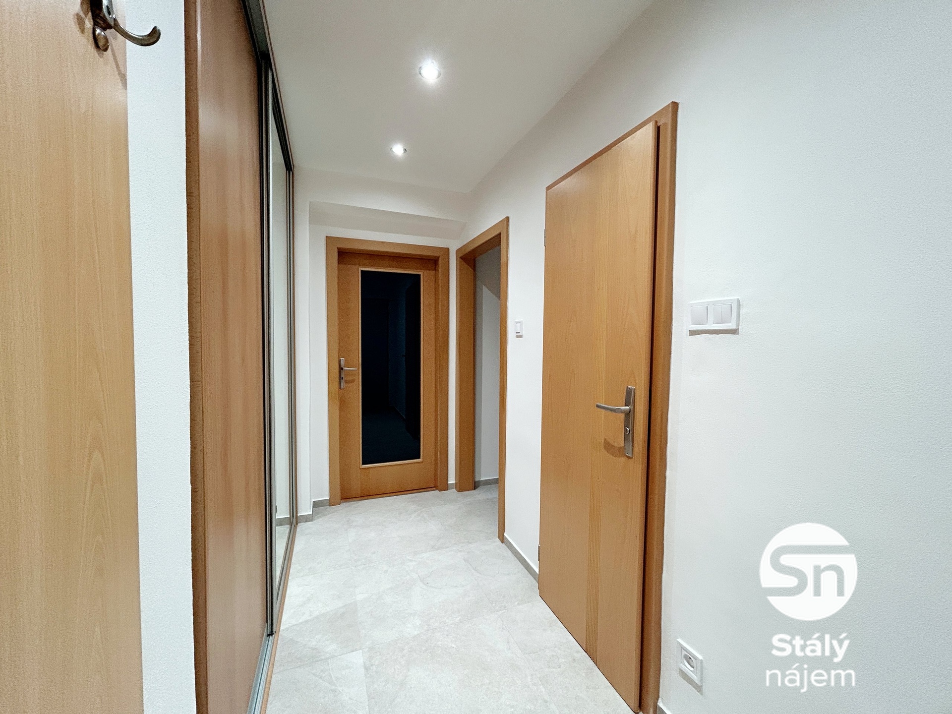V chodbě se nachází velká vestavěná skříň s obrovským zrcadlem, která poskytuje nadstandardní úložný prostor. K bytu také náleží sklepní kóje.