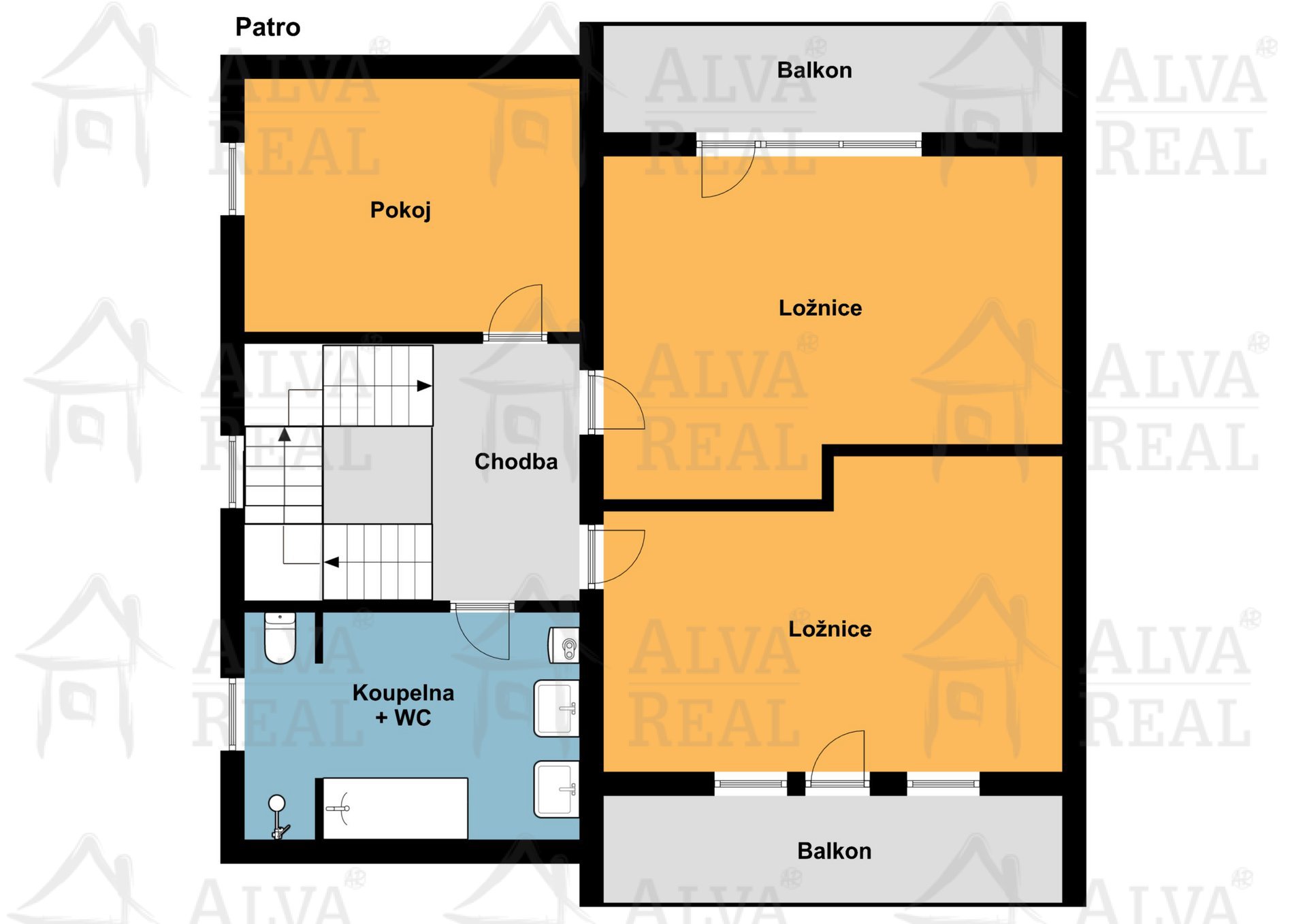 Velkou předností tohoto domu je jeho výjimečná dispozice, v 2. patře se nacházejí 2 ložnice s vlastními prostornými balkony, každé patro s ložnicemi/pokoji má koupelnu s toaletou. Místnosti jsou prostorné a díky velkým oknům světlé. V 1. patře se nachází samostatné WC, přímo v kuchyni se nachází menší spíž a z obývacího pokoje je vstup na 3. balkon.