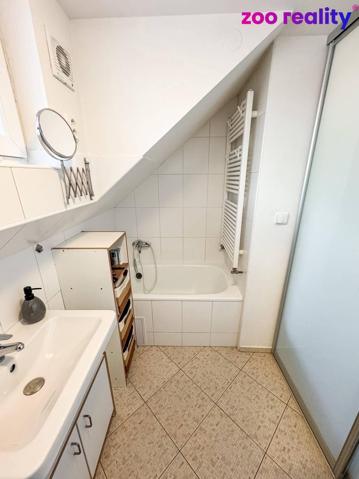 Byt se nachází v podkroví rodinného domu a jeho celková užitná plocha činí 65m2 + 5 metrů sklad.