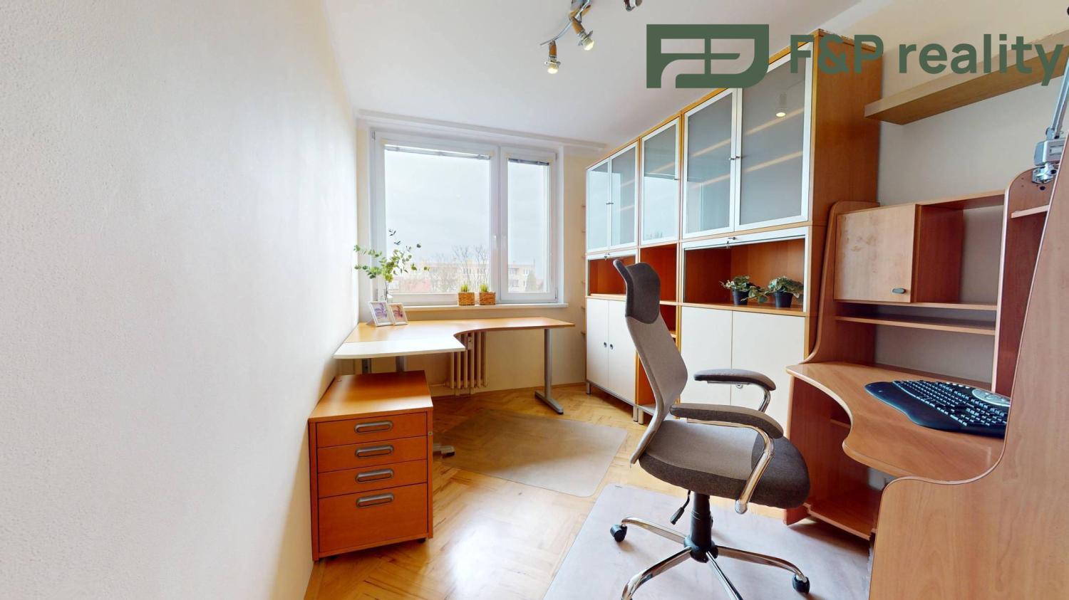 Byt se nachází v dobrém stavu a je připraven k okamžitému nastěhování. Dispozice bytu zahrnuje čtyři ložnice, obývací pokoj, prostornou jídelnu s plně vybaveným kuchyňským koutem, šatnu, oddělenou koupelnu s rohovou vanou a samostatné wc. Pro vaše maximální pohodlí jsou v bytě již instalovány vestavěné skříně a kvalitní dveře značky Porta.