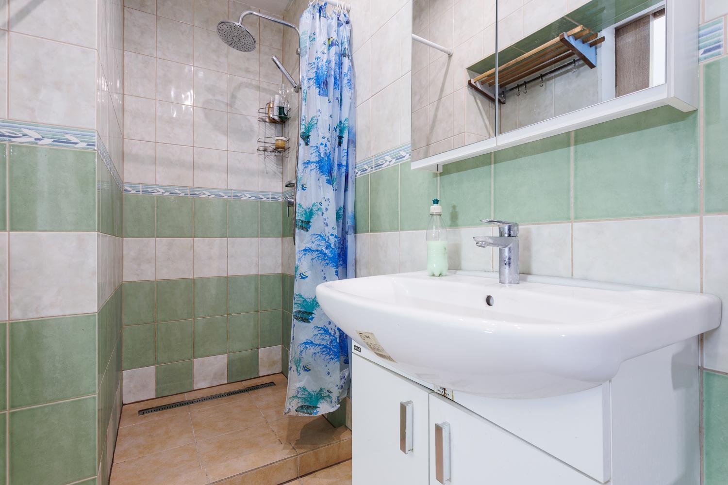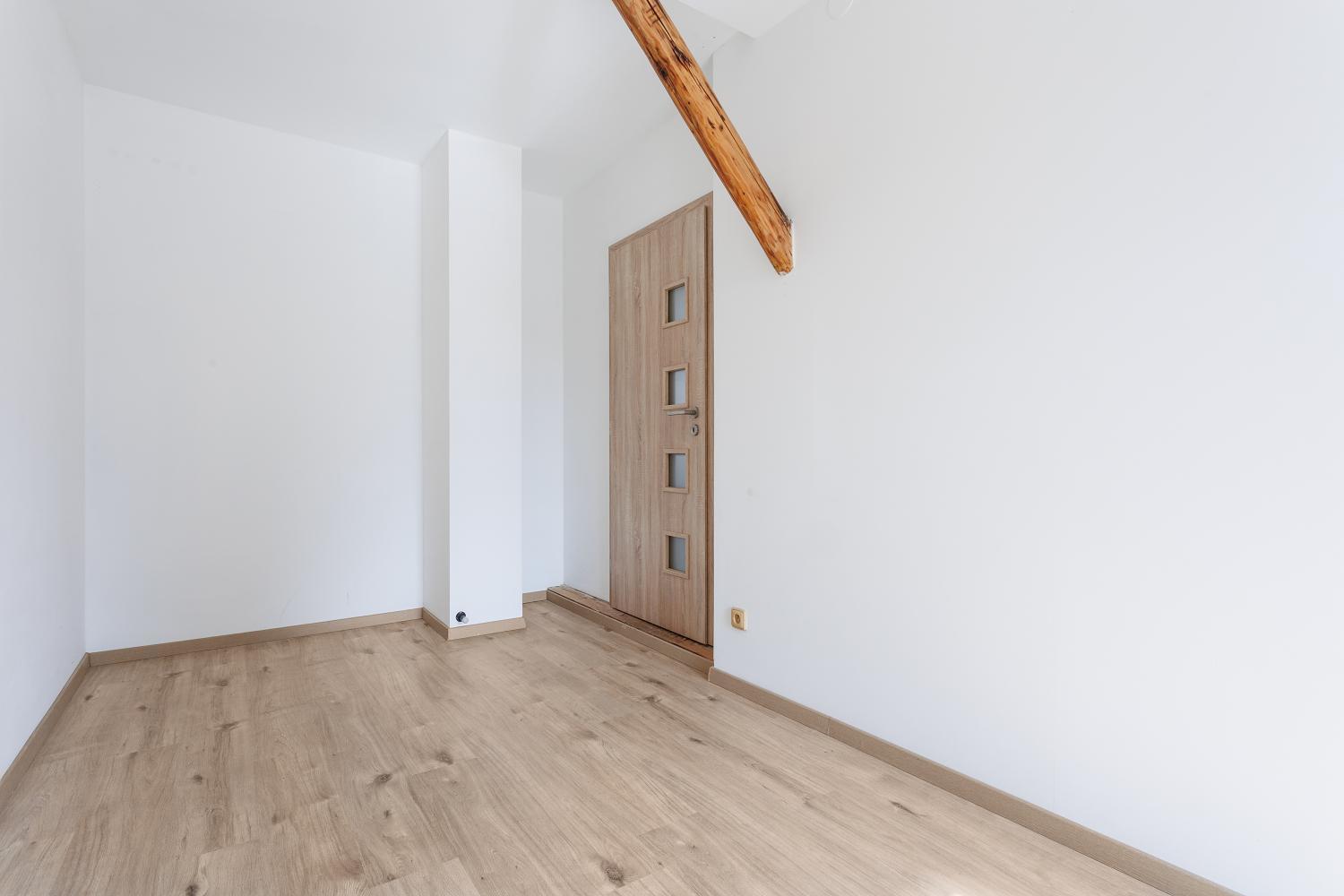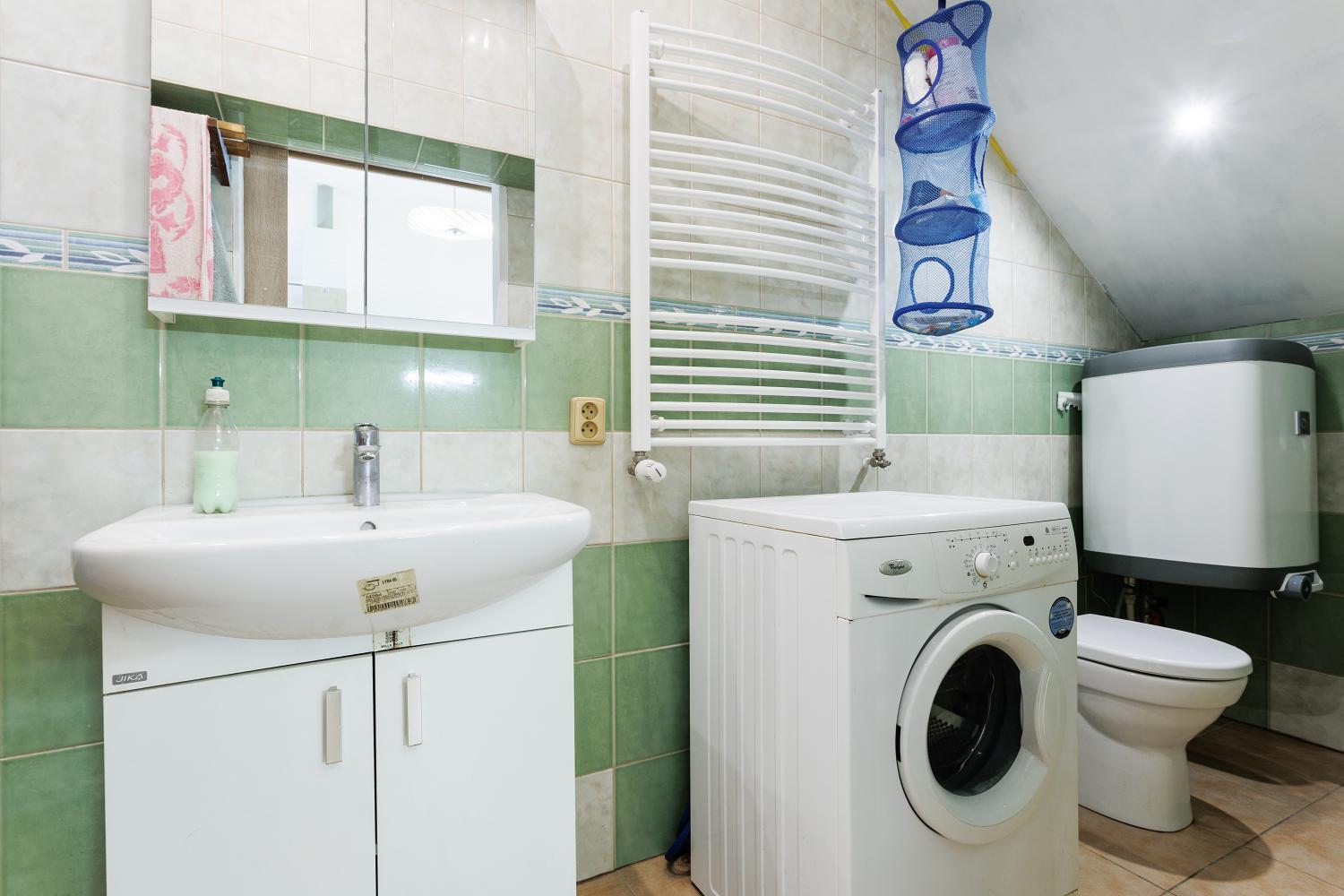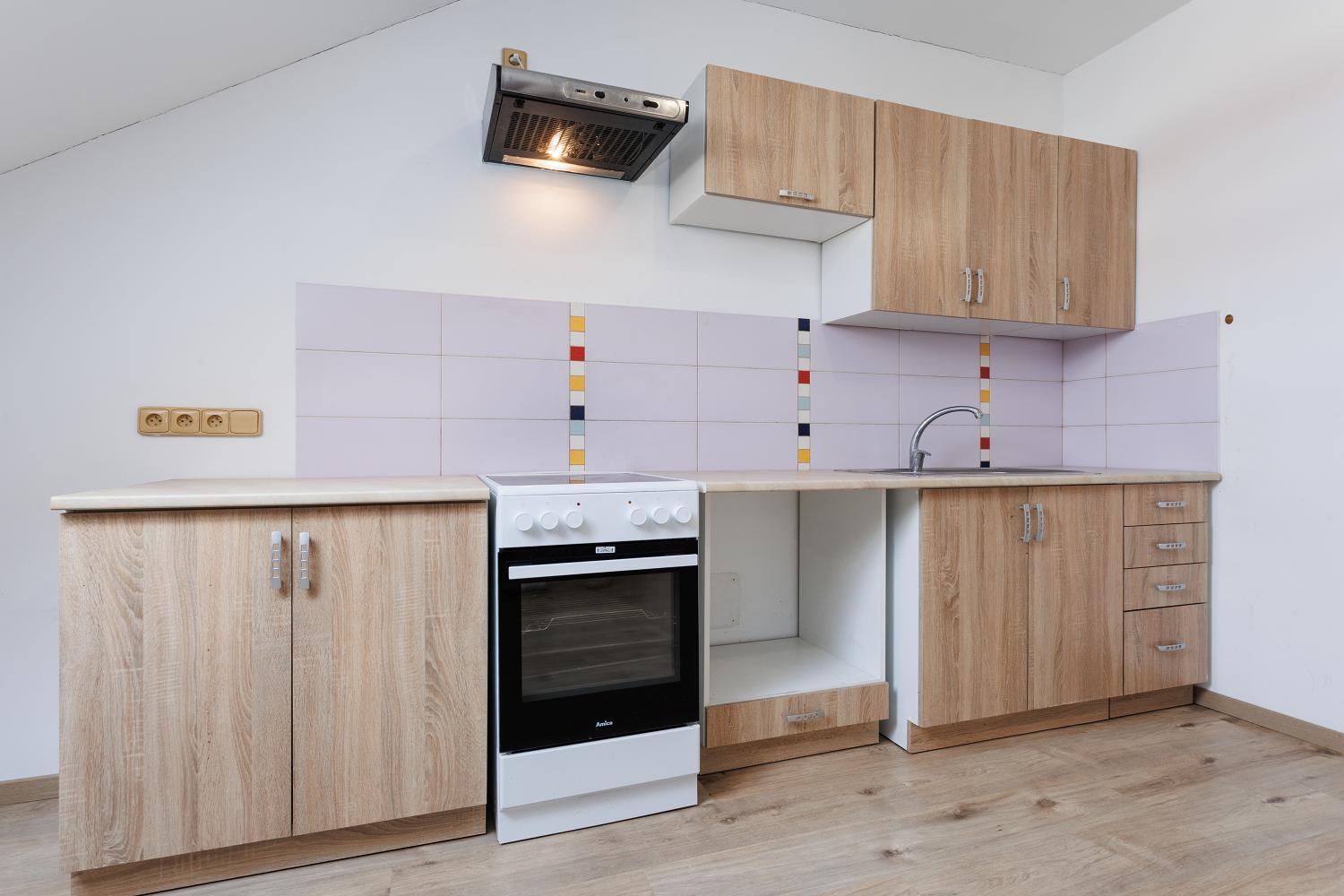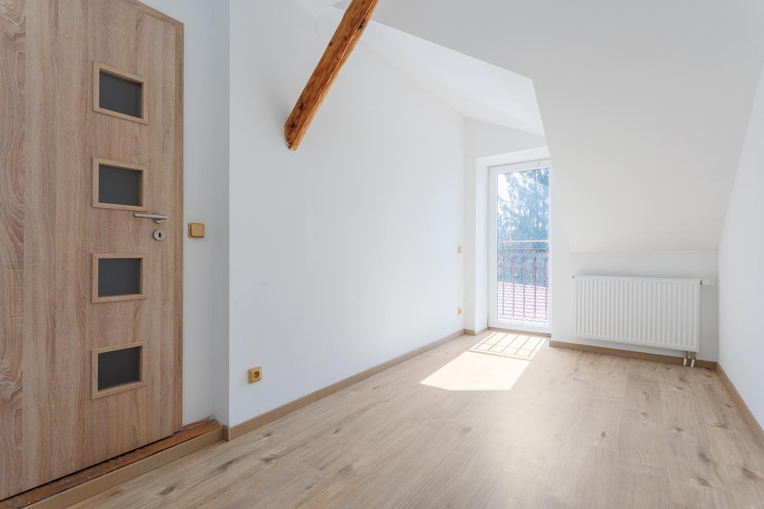 Vstup do domu z ulice, pokračuje chodbou, podél boční stěny domu, chodba prochází celým domem a z ní je vstup jednak do přízemní jednotky 2+kk halou propojenou s obytnou kuchyní. Dále jednotka obsahuje pokoj, koupelnu se sprchovacím koutem a WC, a má vstup do sklípku. Z chodby se vychází ven na terasu a dvorek. Z terasy vstup schodištěm do podkrovní jednotky 2+kk s koupelnou se sprchovacím koutem a WC. Za domem stojí hrubá stavba s novým krovem a krytinou a přípojkami sítí pro případný prostor k podnikání, k pronajímání nebo jako kancelář, wellness, apod. Plocha přízemí 72,7 m2 vč. chodby, plocha podkroví 65,3 m2 vč. malé střešní terasy a schodiště. Ústřední topení s plynovým kotlem, ohřev vody bojlerem. PENB třída C