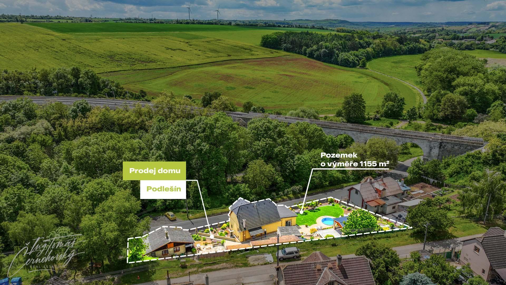 Obec Podlešín leží pouhých osm minut jízdy od Slaného, dvacet minut od Kladna a přibližně dvacet pět minut od Prahy (Zličín). Díky blízkosti dálnice D7 je zajištěno rychlé a pohodlné spojení i v rámci každodenního dojíždění. Okolí nabízí krásnou přírodu a výjimečnou atmosféru podtrženou historickým kamenným viaduktem, který je dominantou obce.
