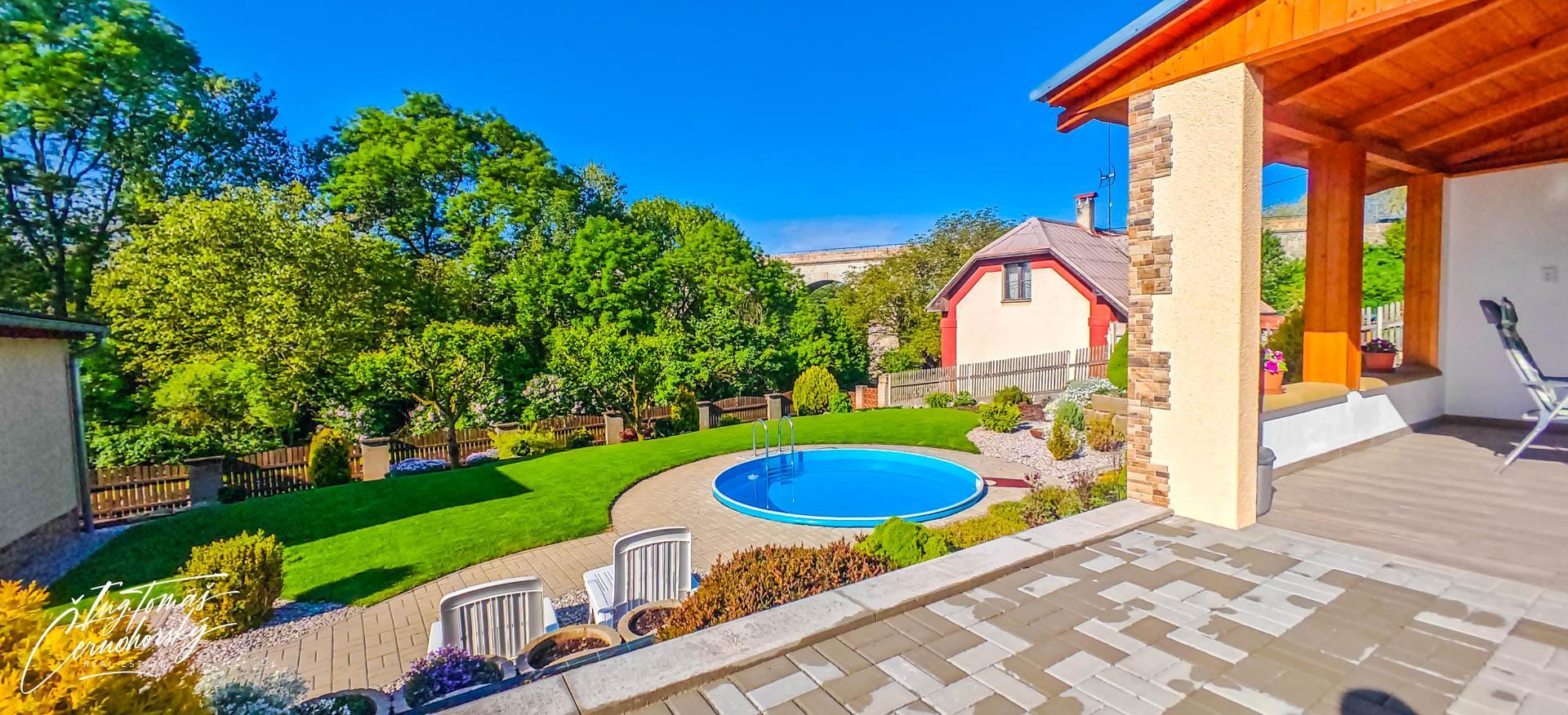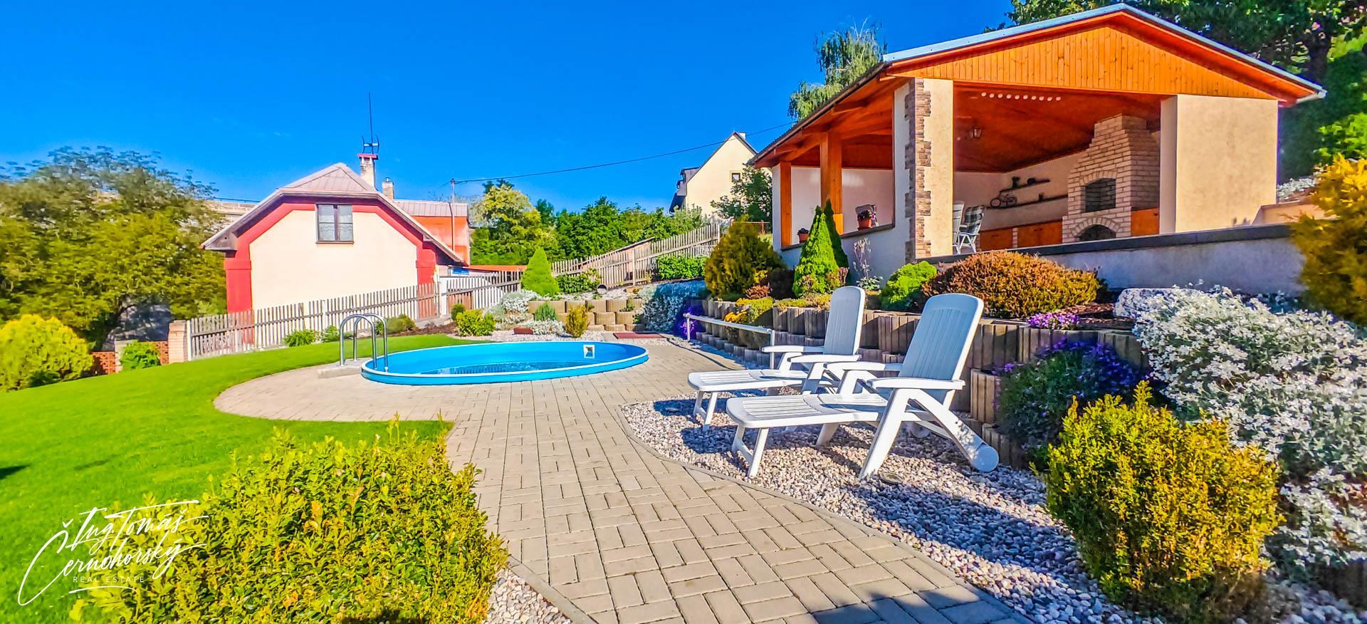 NOVINKA - Prodej krásného rodinného domu s bazénem, dřevěnou chatou a krásnou zahradou Podlešín