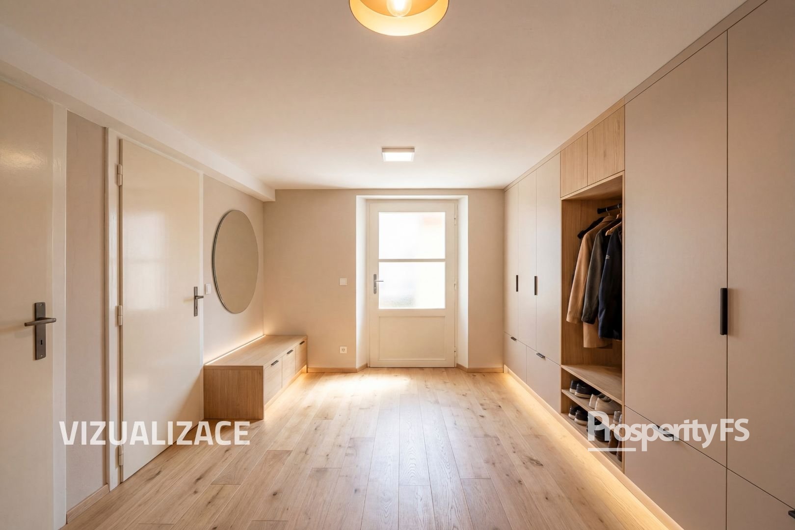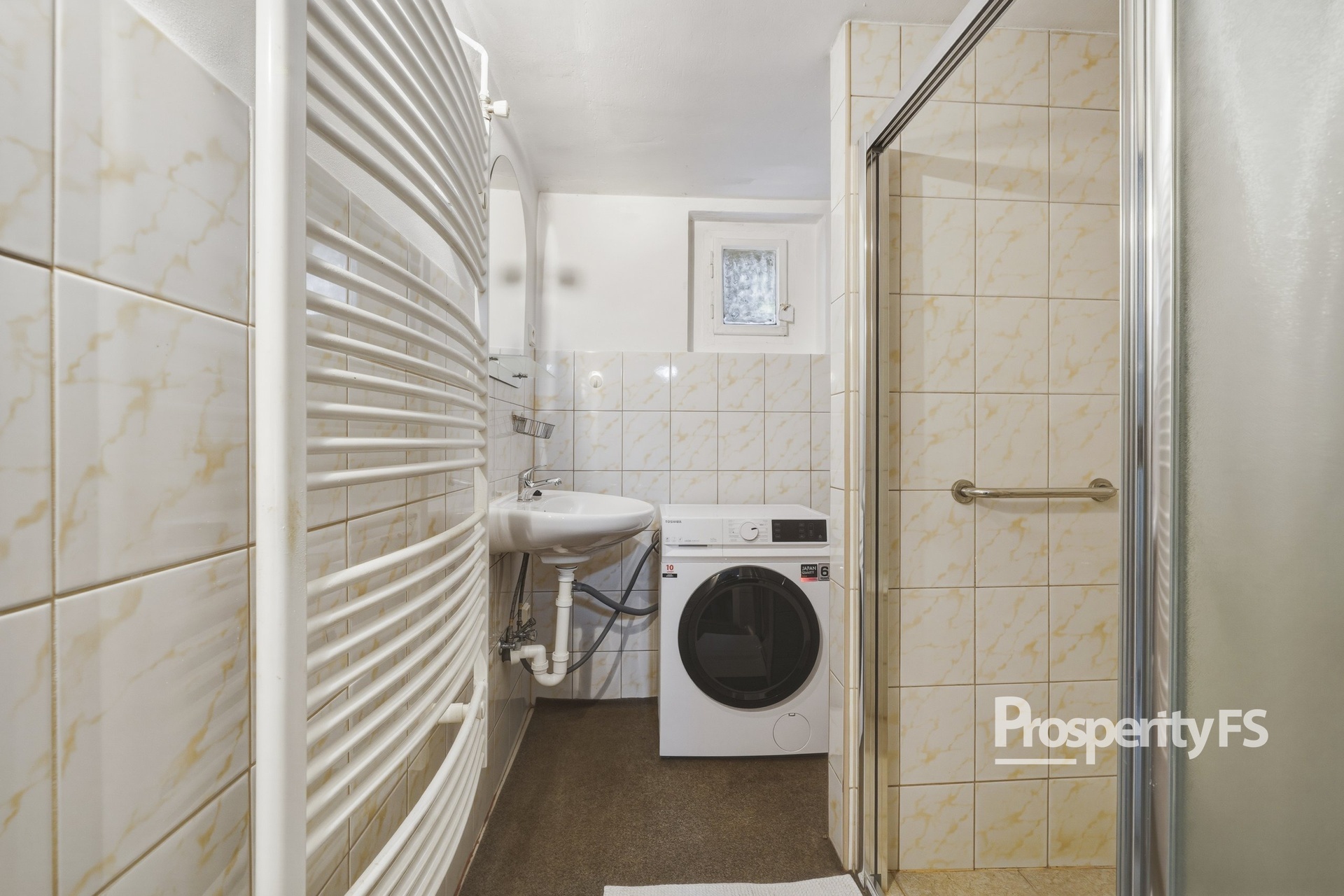 Součástí domu je koupelna, vstupní chodba a praktická technická místnost, která zajišťuje potřebné zázemí pro chod domácnosti.