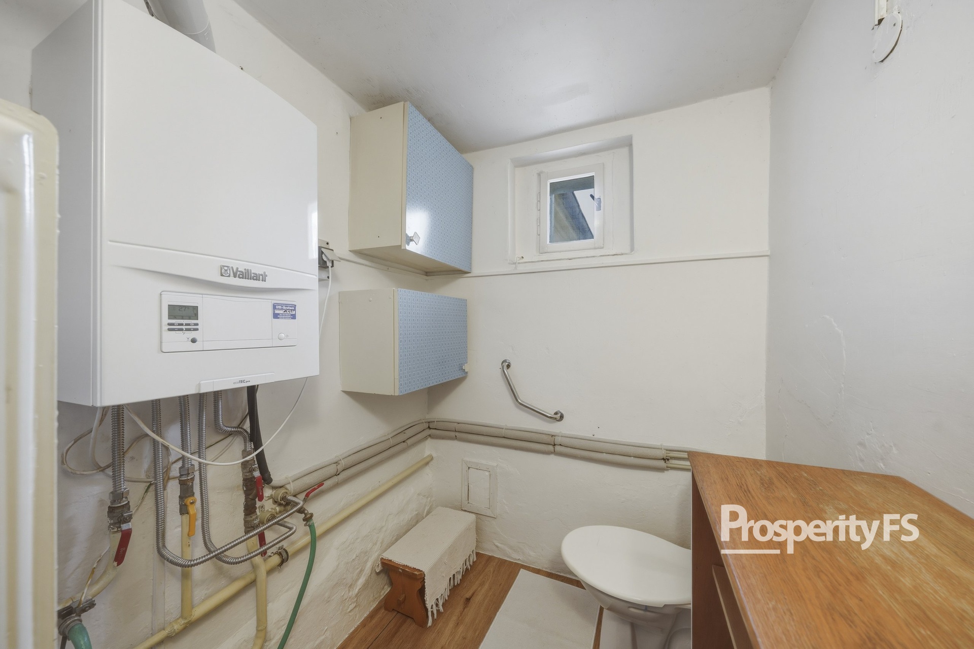 Dům je napojen na všechny důležité inženýrské sítě – vodu, elektřinu, plyn i kanalizaci. O vytápění se stará moderní plynový kondenzační kotel instalovaný před dvěma lety, který zajišťuje úsporný a komfortní provoz.