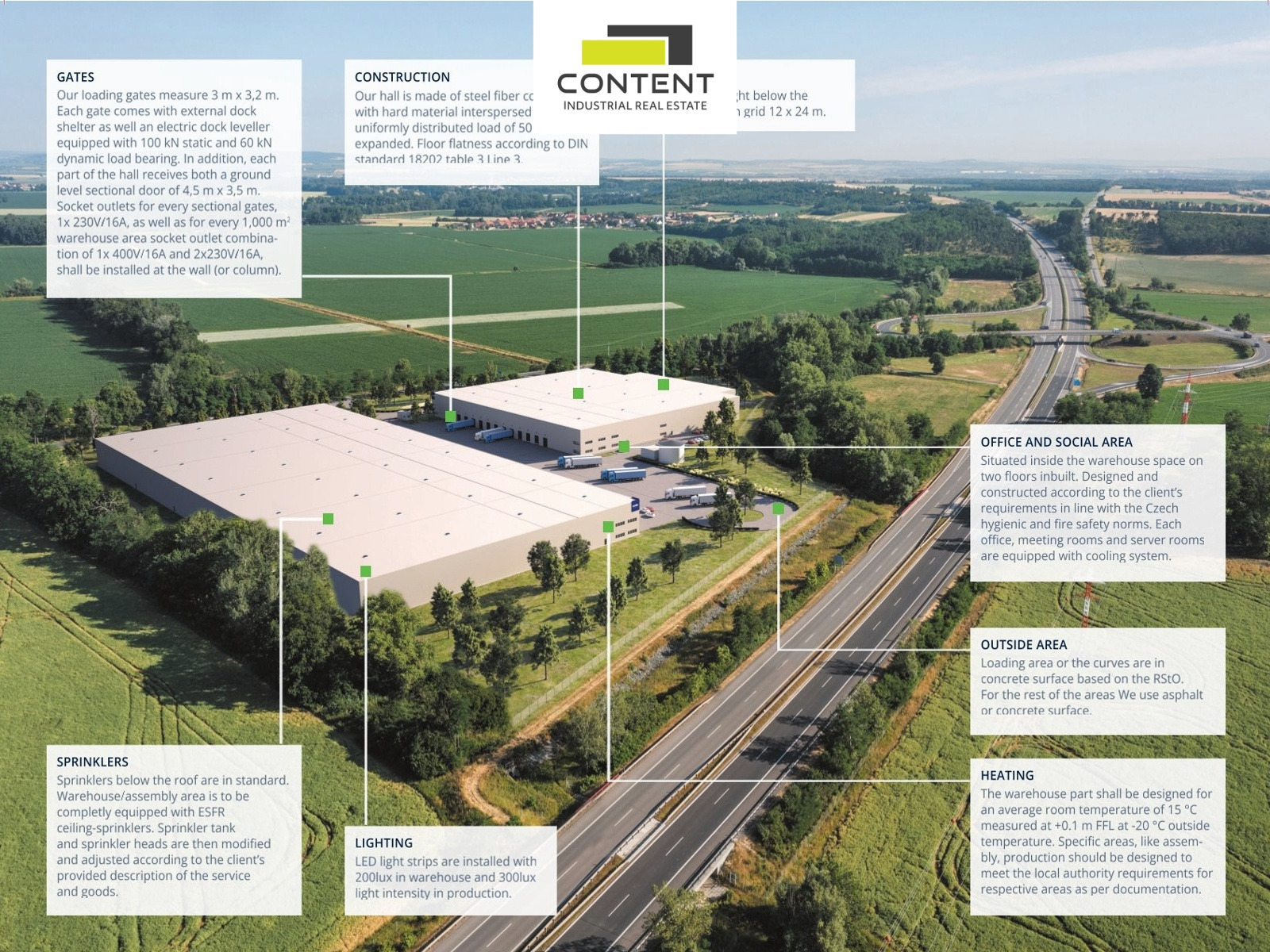 V zastoupení majitele a bez provize nabízíme novostavbu skladu nebo výrobních prostor o velikosti 19825 m², umístěných v moderním parku nacházejícím se podél dálnice D52, EXIT 23.