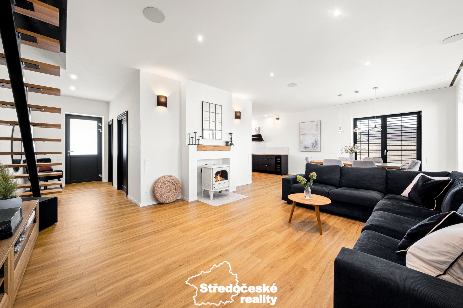 Dům byl dokončen v roce 2022 a je ideální pro rodinu, která hledá nový dům u Prahy s velkou zahradou, chytrou domácností a energeticky úsporným provozem.
